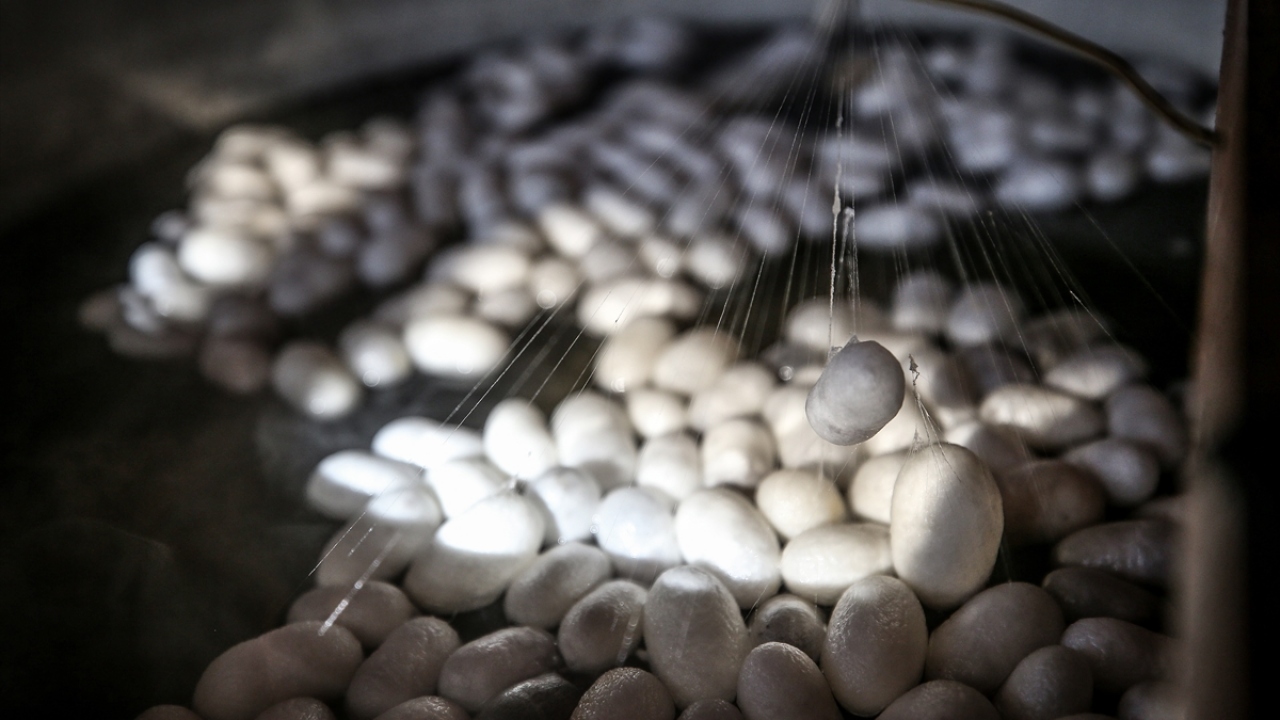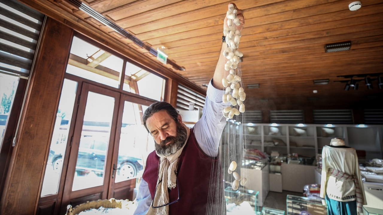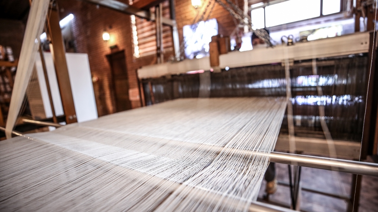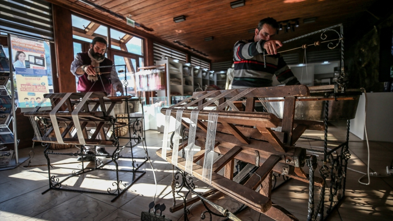 Bursa'daki Umurbey İpek Üretim ve Tasarım Merkezinde, Osmanlı Döneminde kullanılan ve aslına uygun şekilde tekrar yapılan dokuma tezgahında, ipek kumaşlara tarihi motifler geleneksel yöntemlerle işleniyor.