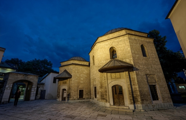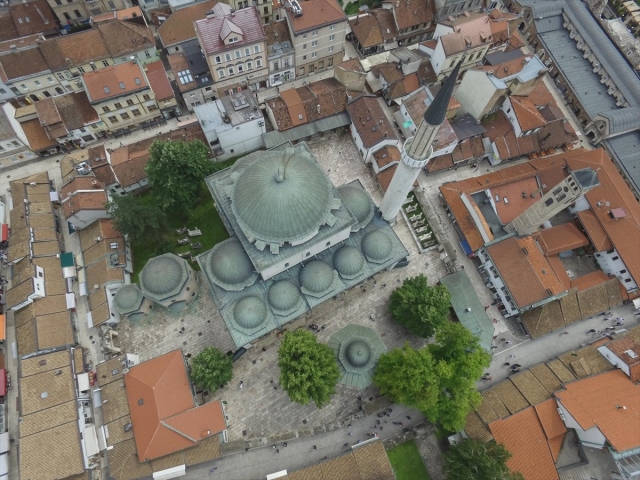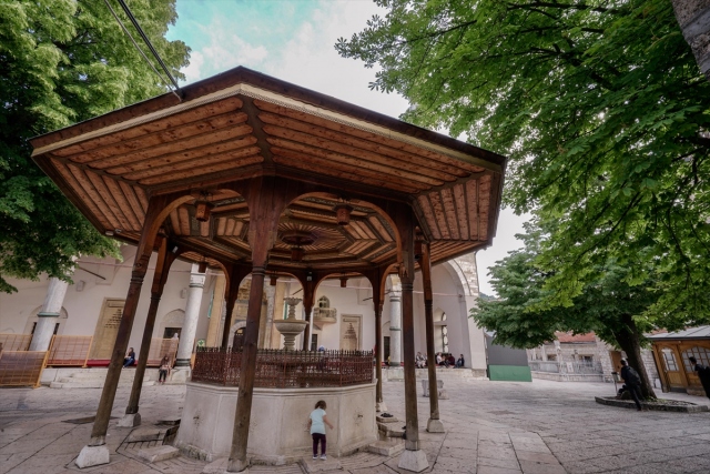 Bosna Hersek'in başkenti Saraybosna'nın Osmanlı idaresinde olduğu dönemde, yaklaşık beş asır önce inşa edilen ve İslam mimarisinin ülkedeki en güzide örneklerinden biri kabul edilen Tarihi Başçarşı'daki Gazi Hüsrev Bey Camisi, güzelliğiyle büyük ilgi görüyor.