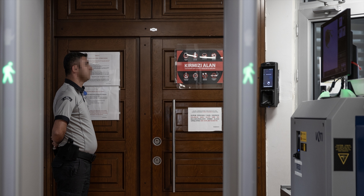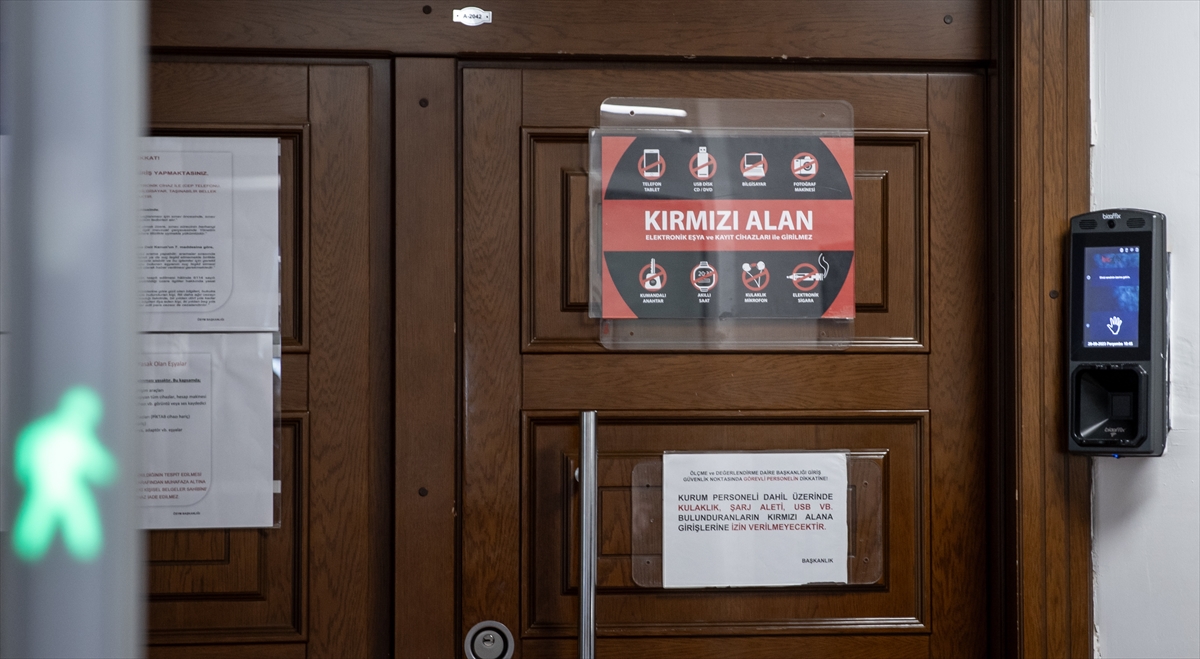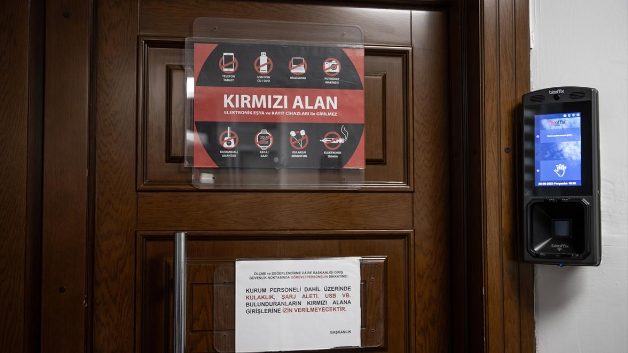 Sınav güvenliğinin sağlanması için soru yazarları, yanlarında hiçbir materyal olmadan x-ray cihazları ve el dedektörleriyle arandıktan sonra avuç içi tarama ve yüz okuma sistemlerinden geçerek kırmızı alana alınıyor.