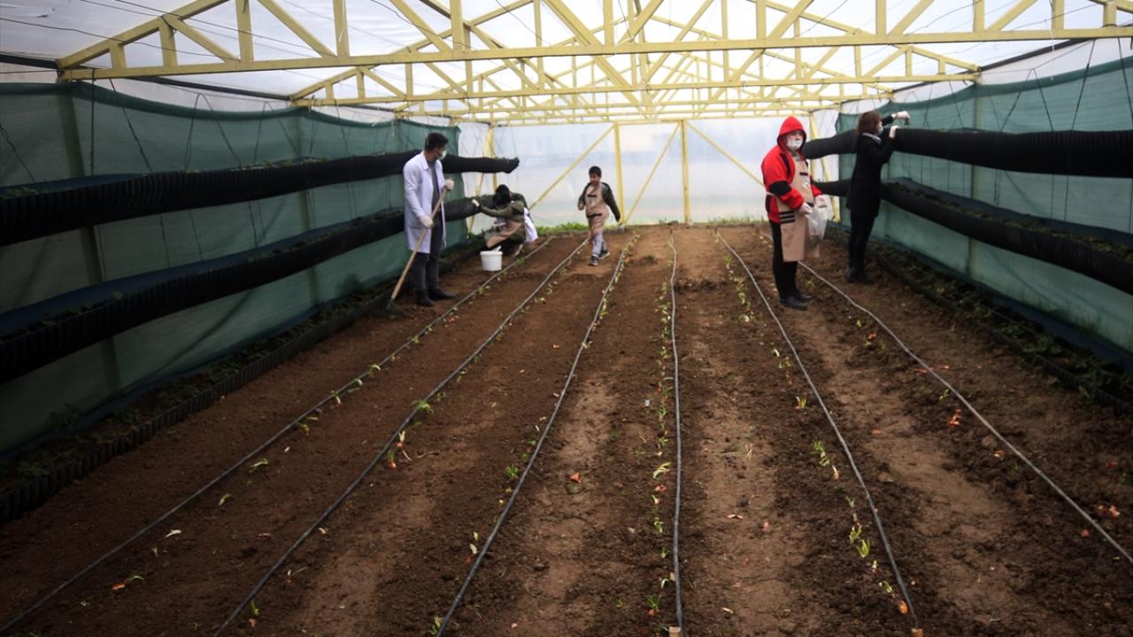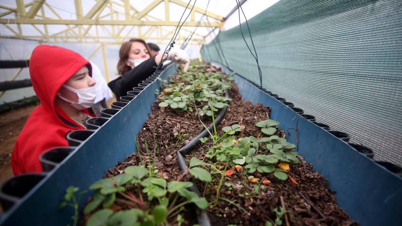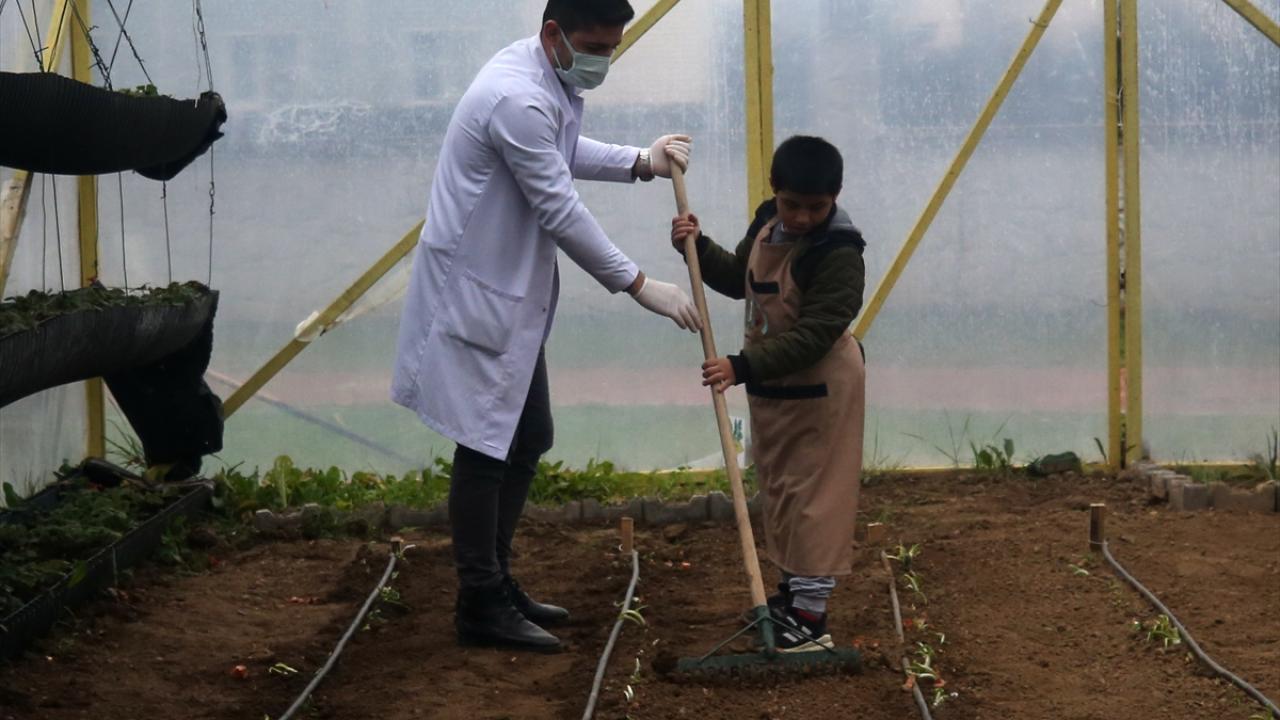 Düzce'de öğretmenler tarafından okul bahçesinde oluşturulan serada sebze ve meyve yetiştirmeyi öğrenen otizmli öğrenciler, hem doğa sevgisi kazanıyor hem de farklı alanlarda becerilerini geliştirme fırsatı buluyor.