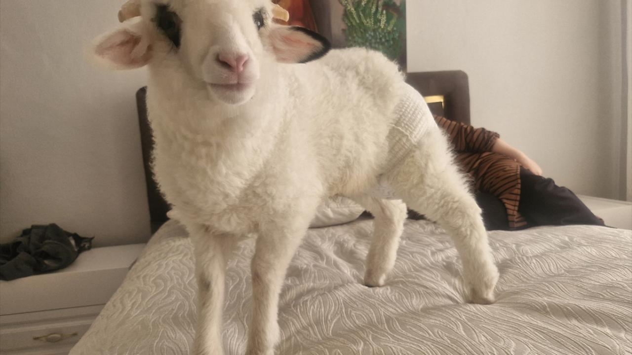 Aile evde kuzuyu bezleyerek ve biberonla besleyerek bebek gibi bakıyor.