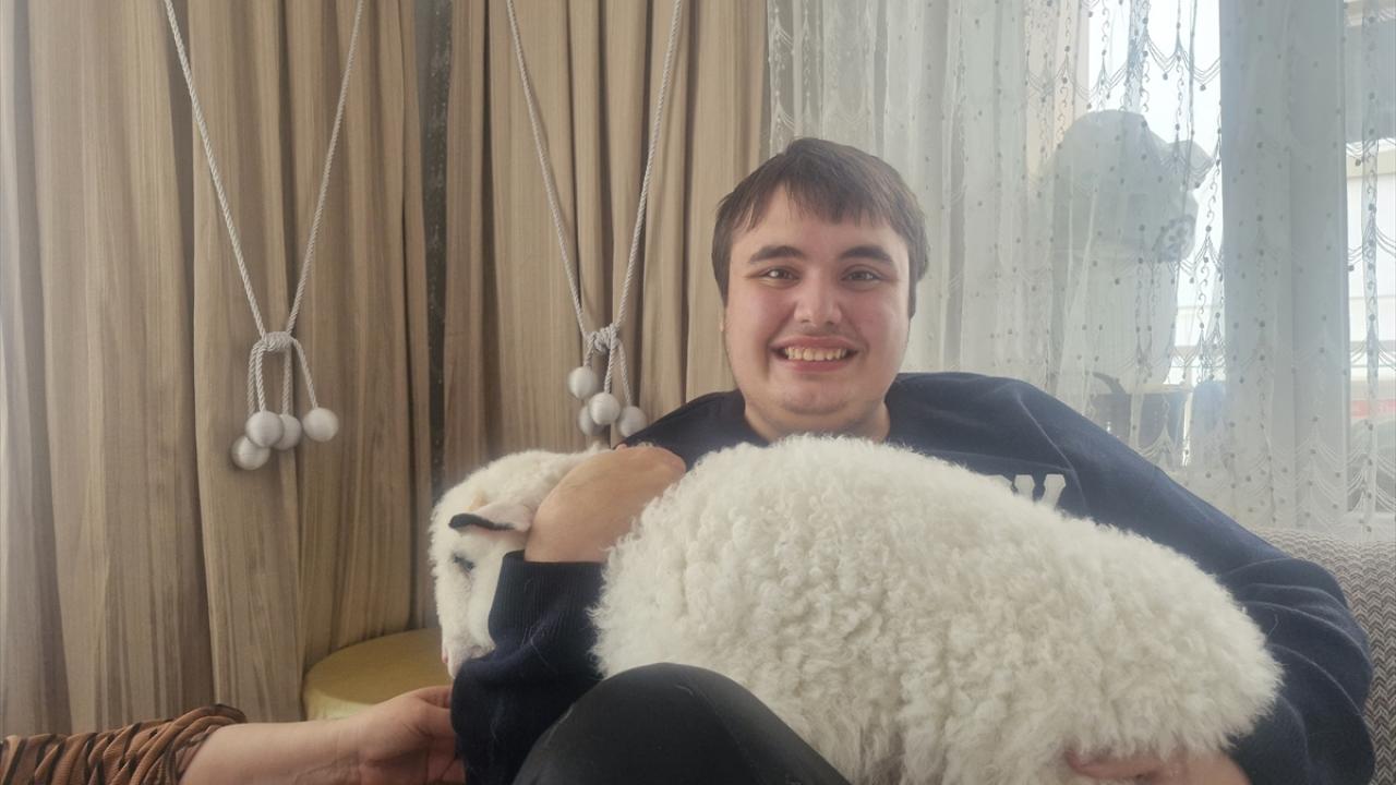 İki çocuk sahibi Şulen ailesi otizmli oğulları 22 yaşındaki Ali Eren`in isteği üzerine aldıkları kuzuya "Üzüm" ismini verdi.