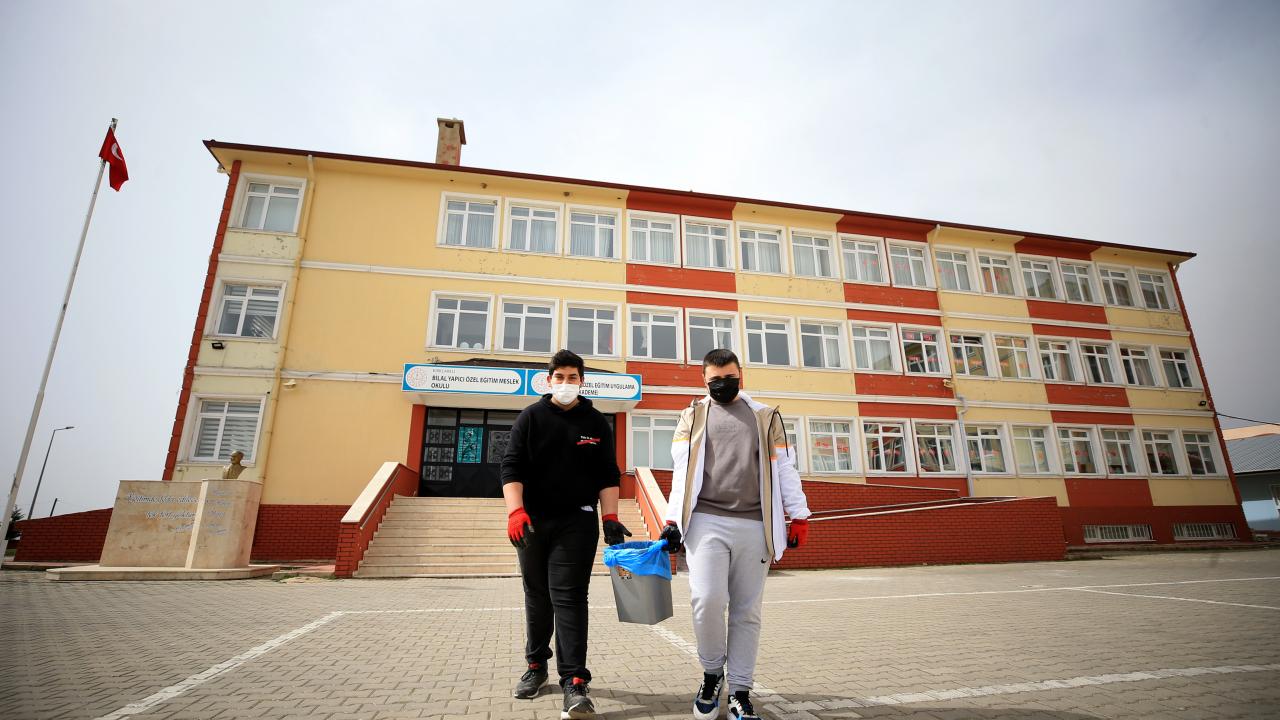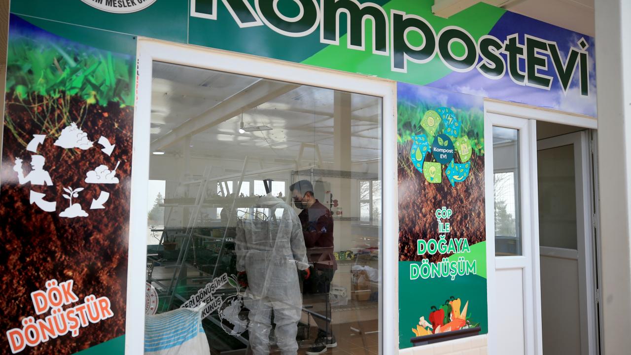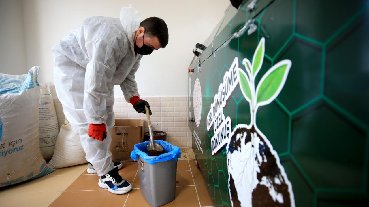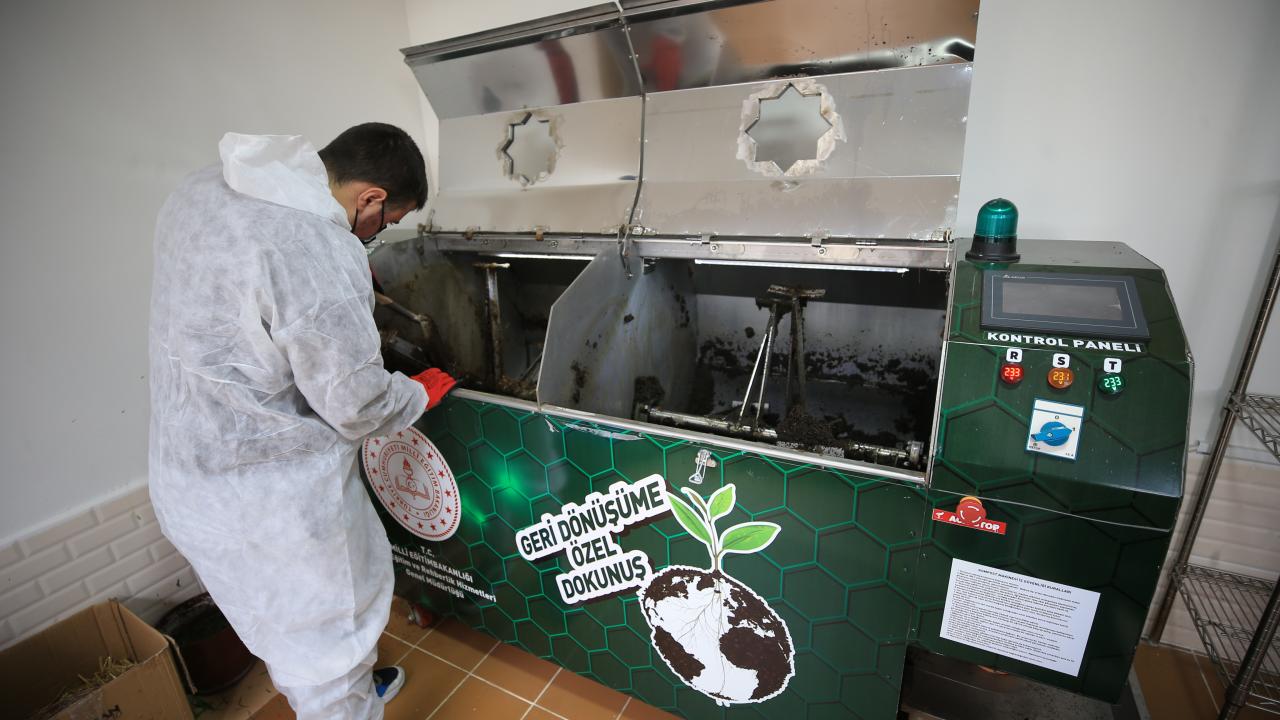 Otizmli öğrenciler, okullarındaki çay ocağı ve yemekhaneden çıkan organik atıkları toplayıp, tarım atölyelerine kurulan kompost makinesine götürüyor.