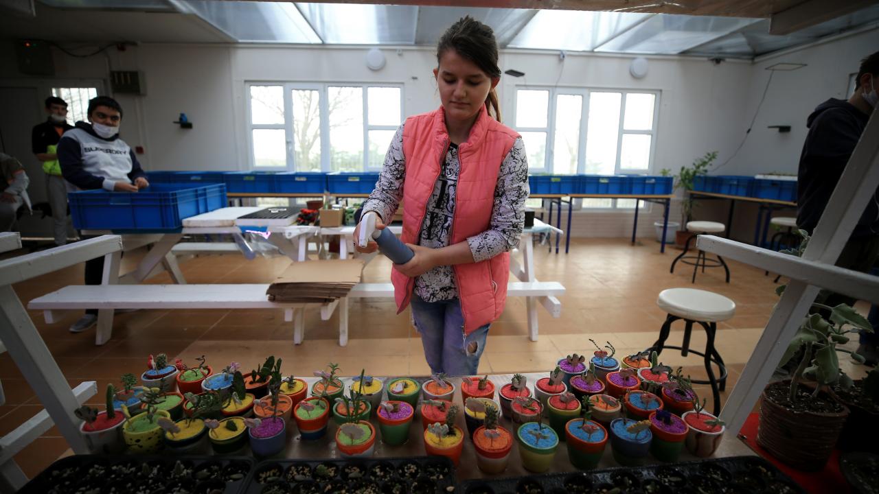 Kırklareli'ndeki özel eğitim meslek okulunda eğitim gören otizmli öğrenciler, okullarındaki çay ocağı ve yemekhaneden çıkan organik atıklarla elde ettikleri kompost ile sukulent üretiyor.