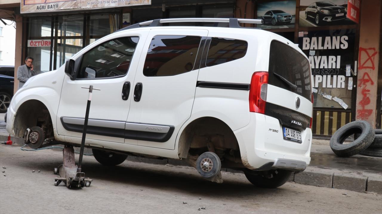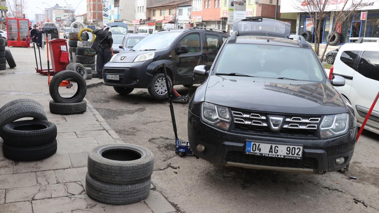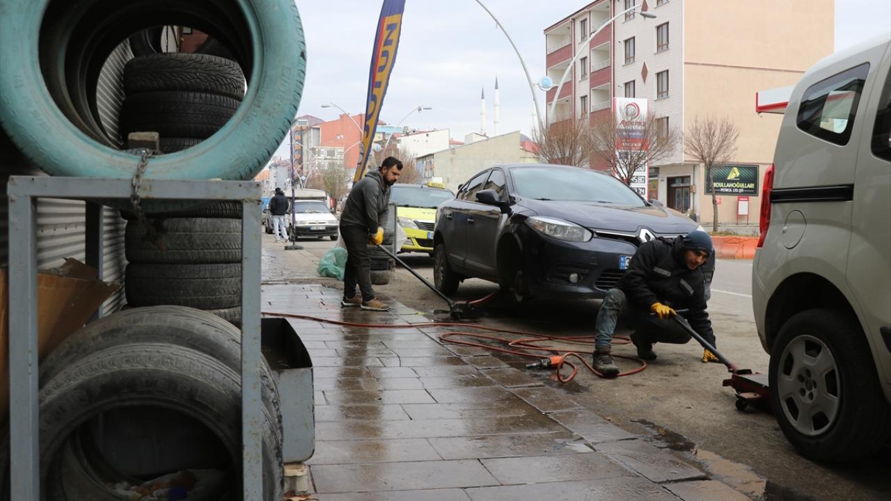 Ağrı'da, bir hafta öne çekilen yolcu ve yük taşımacılığında kullanılan ticari araçlarda zorunlu kış lastiği uygulaması nedeniyle oto lastikçilerde yoğunluk oluşuyor.