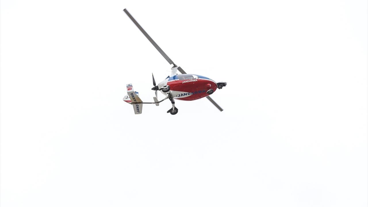 Aydın Jandarma Filo Komutanlığından görevlendirilen cayrokopter, kontrol uçuşu gerçekleştirerek tespit edilen ihlalleri telsiz irtibatıyla kara ekiplerine bildiriyor.