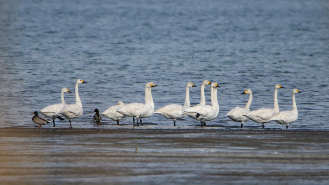 Sibirya ve kuzey bölgelerden kışı geçirmek için Van Gölü havzasına gelen ötücü kuğular da flamingolarla aynı bölgelerde konaklayarak doğaseverleri ve fotoğraf tutkunlarını cezbeden görüntüler oluşturuyor.