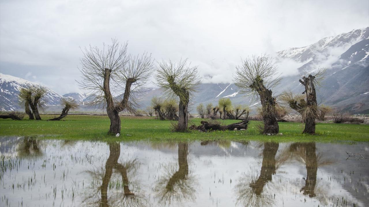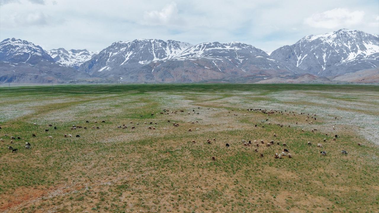Yüksek kesimlerin halen karla kaplı olduğu ilçede, ovalar nevruz, kardelen, küre ve sümbül çiçekleriyle renklendi.