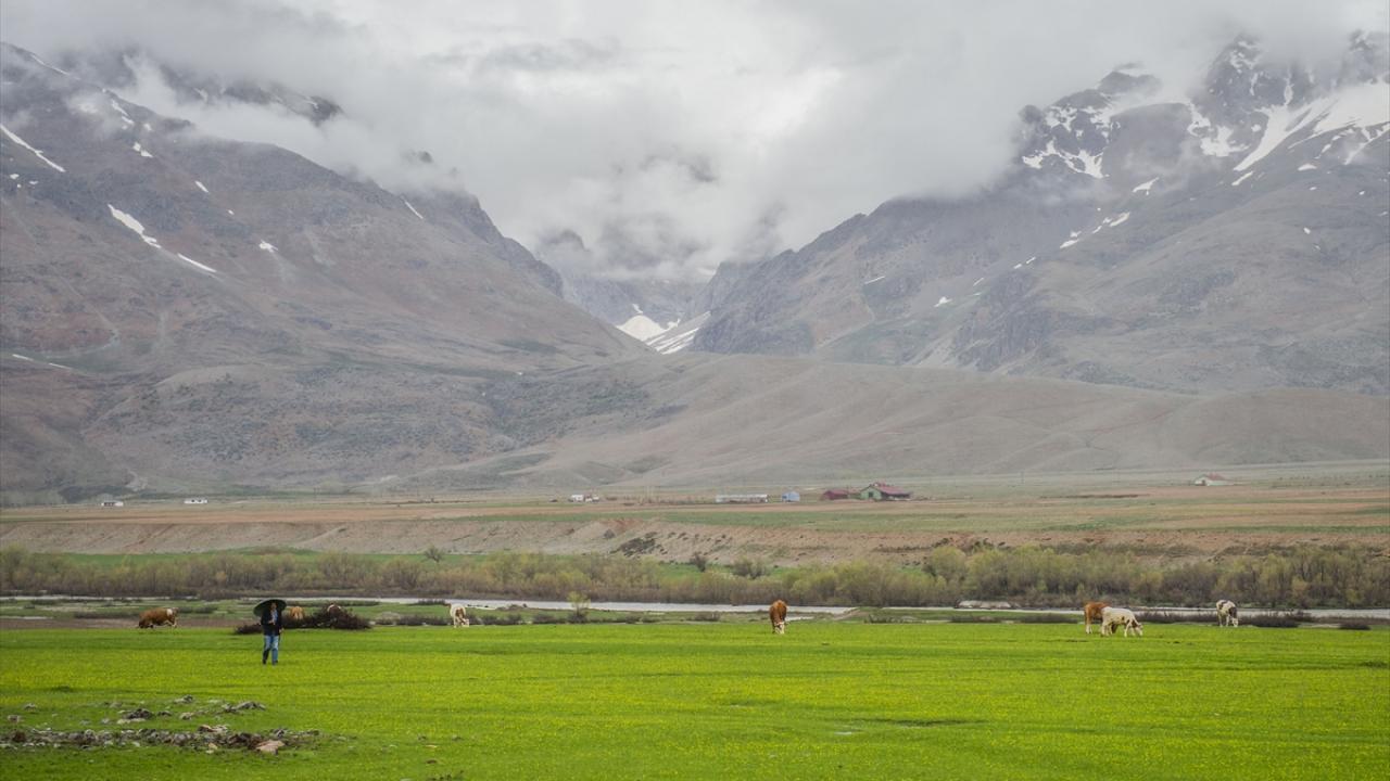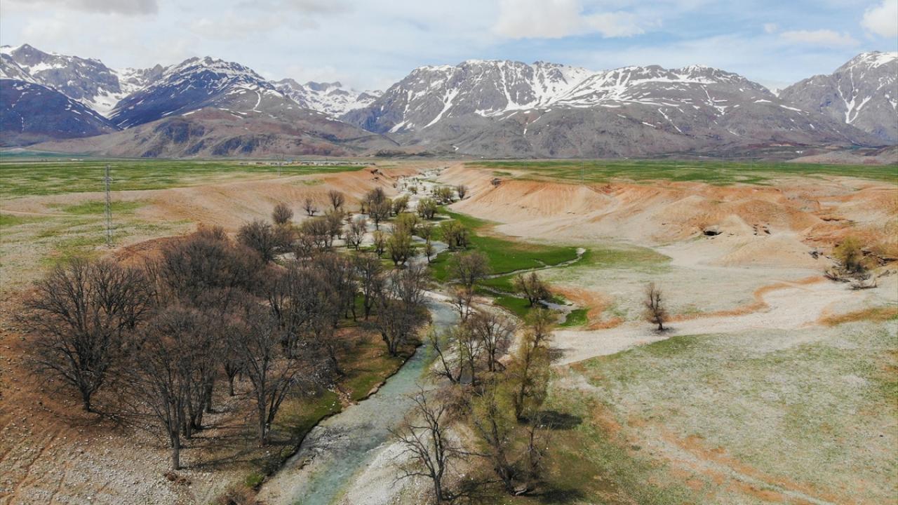 Tunceli'nin Ovacık ilçesinde karların erimesiyle ovalar ve tarım arazileri yeşilin tonlarına büründü.