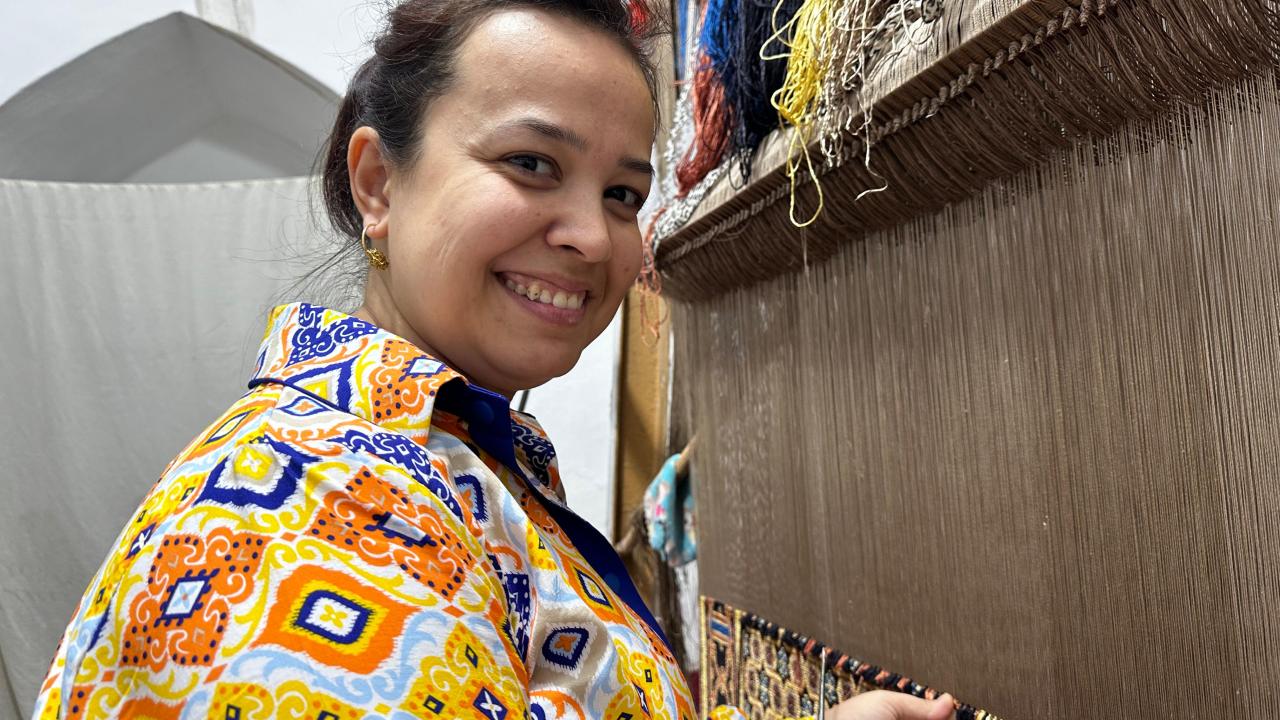 Özbekistan`ın batısındaki Harezm bölgesinde bulunan Hive`de 30 yaşındaki halı dokumacısı Zübeyde Rozmetova, 19 yaşından beri bu işi yaptığını söyledi.