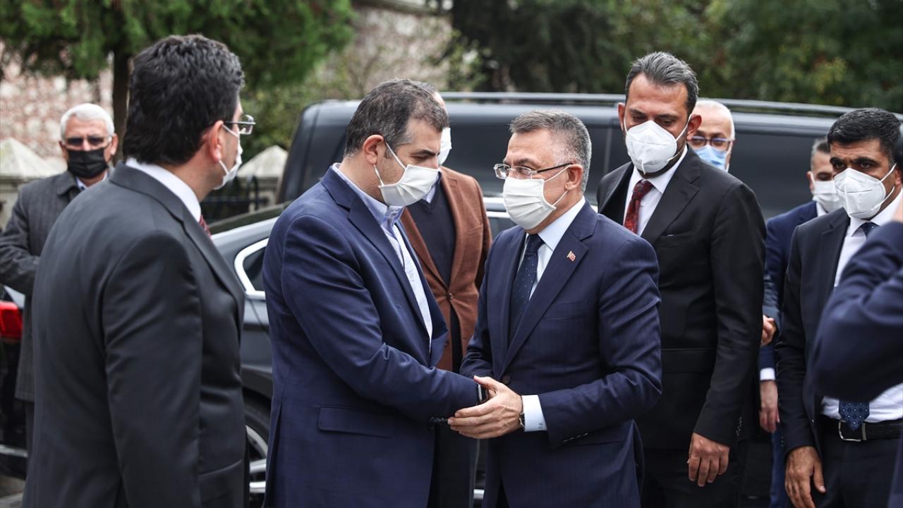 Cumhurbaşkanı Yardımcısı Fuat Oktay törene katıldı. Oktay`ı Özdemir Bayraktar`ın oğlu Haluk Bayraktar (sol 2) karşıladı.