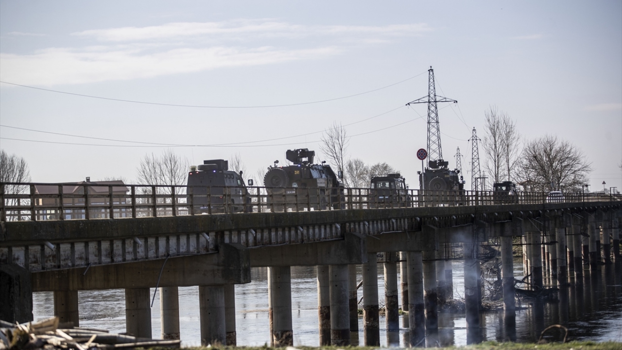 Edirne'de, özel harekat polisleri, geri itmeleri önlemek amacıyla Türkiye ile Yunanistan arasında doğal sınır konumundaki Meriç Nehri'nde görev alıyor.