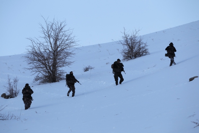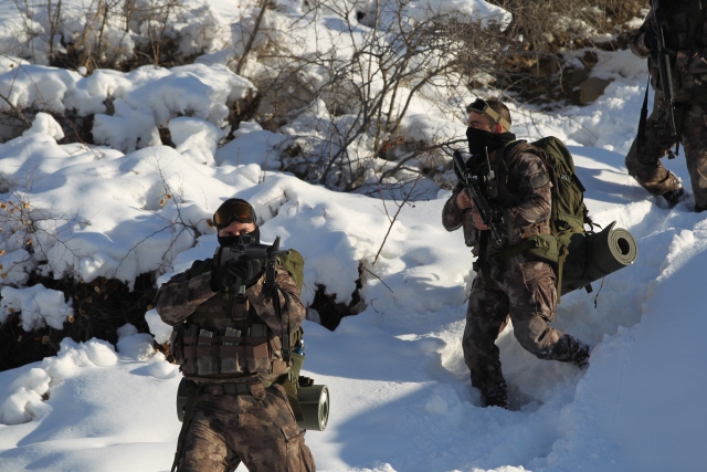 Hakkari Emniyet Müdürlüğünde görevli özel harekat polisleri, olumsuz hava koşulları ve zorlu doğa şartlarına rağmen bölücü terör örgütüne göz açtırmıyor.