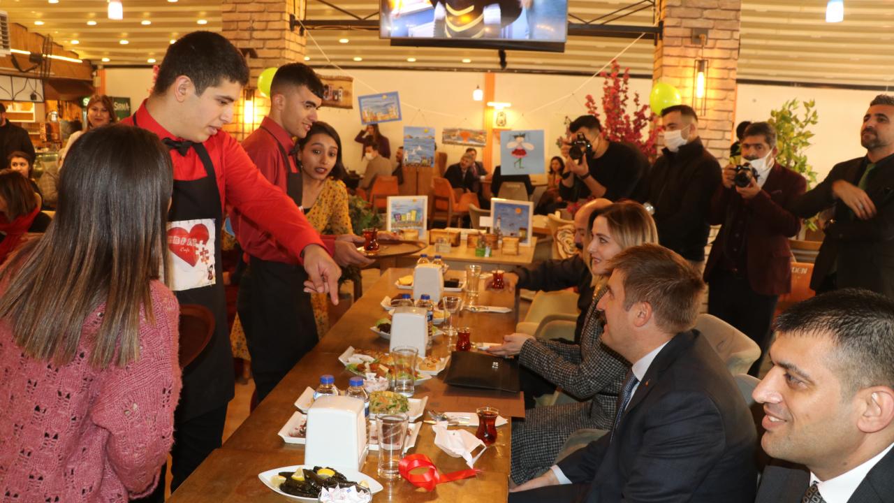 Iğdır'da özel çocuklar, 3 Aralık Dünya Engelliler Günü kapsamında `empati kafe`ye dönüştürülen iş yerini bir günlüğüne işlettiler.