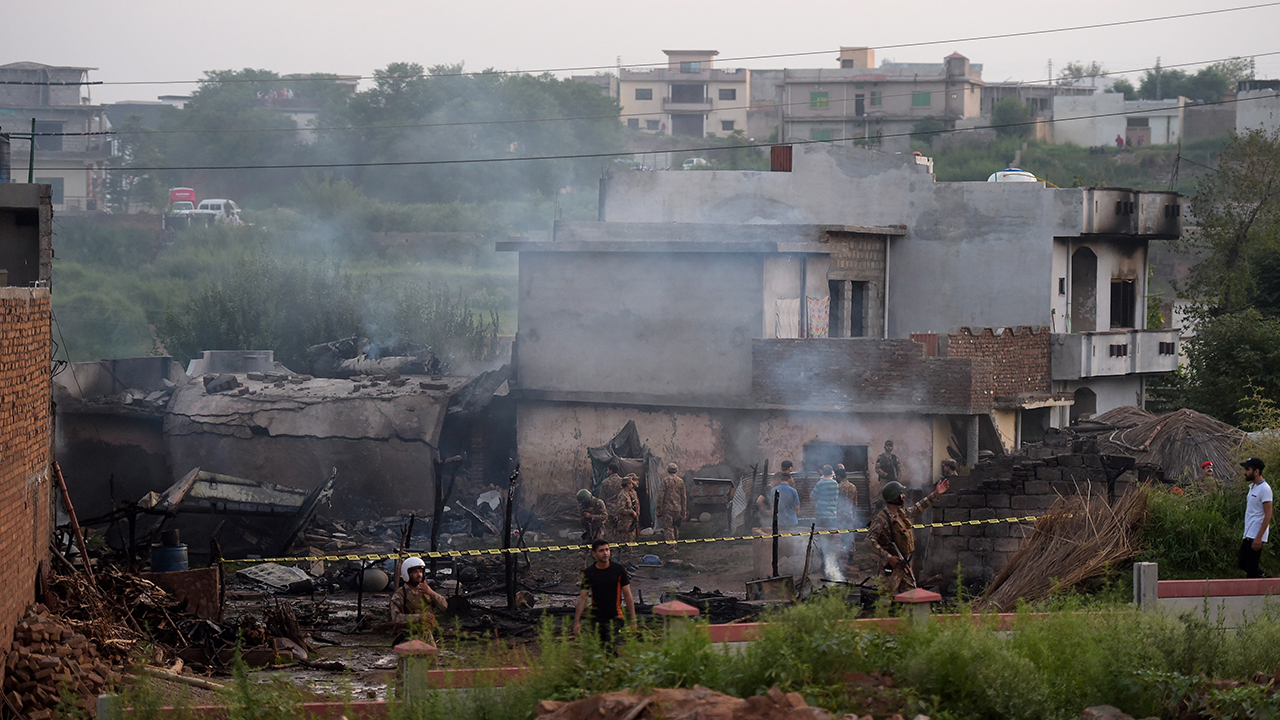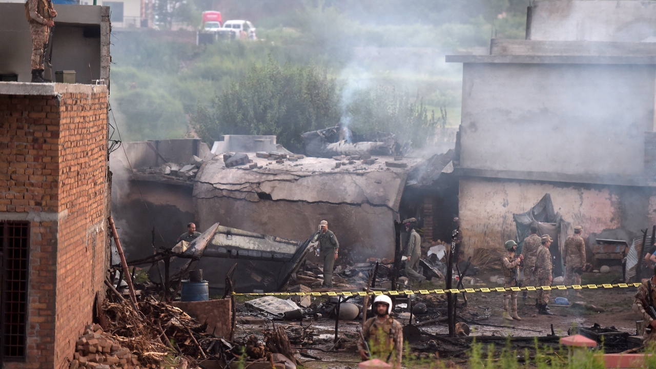 Pakistan Hava Kuvvetlerine ait eğitim uçağı evlerin arasına düşmesi sonucu 5'i askeri personel 17 kişi hayatını kaybetti.