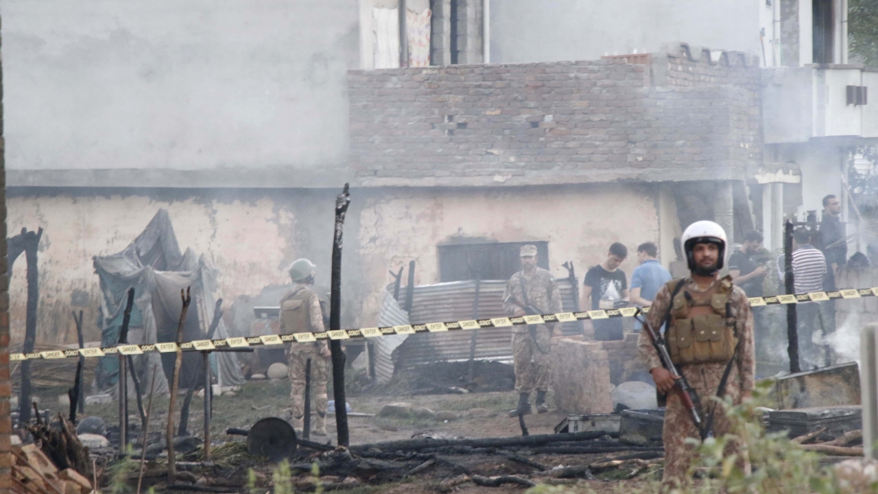 Pakistan ordusu askerleri, olay yerinde güvenlik önlemleri aldı.