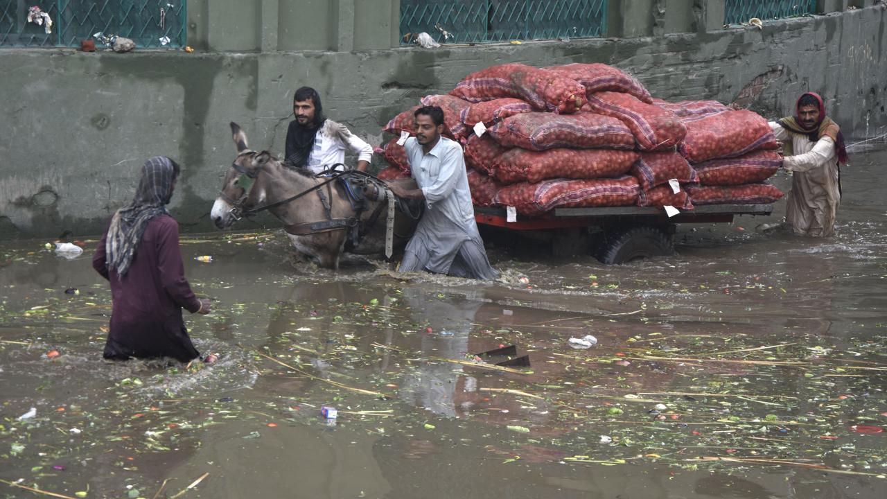 Pakistan'ın Lahor kentinde sağanak ve şiddetli fırtına hayatı olumsuz etkiledi.