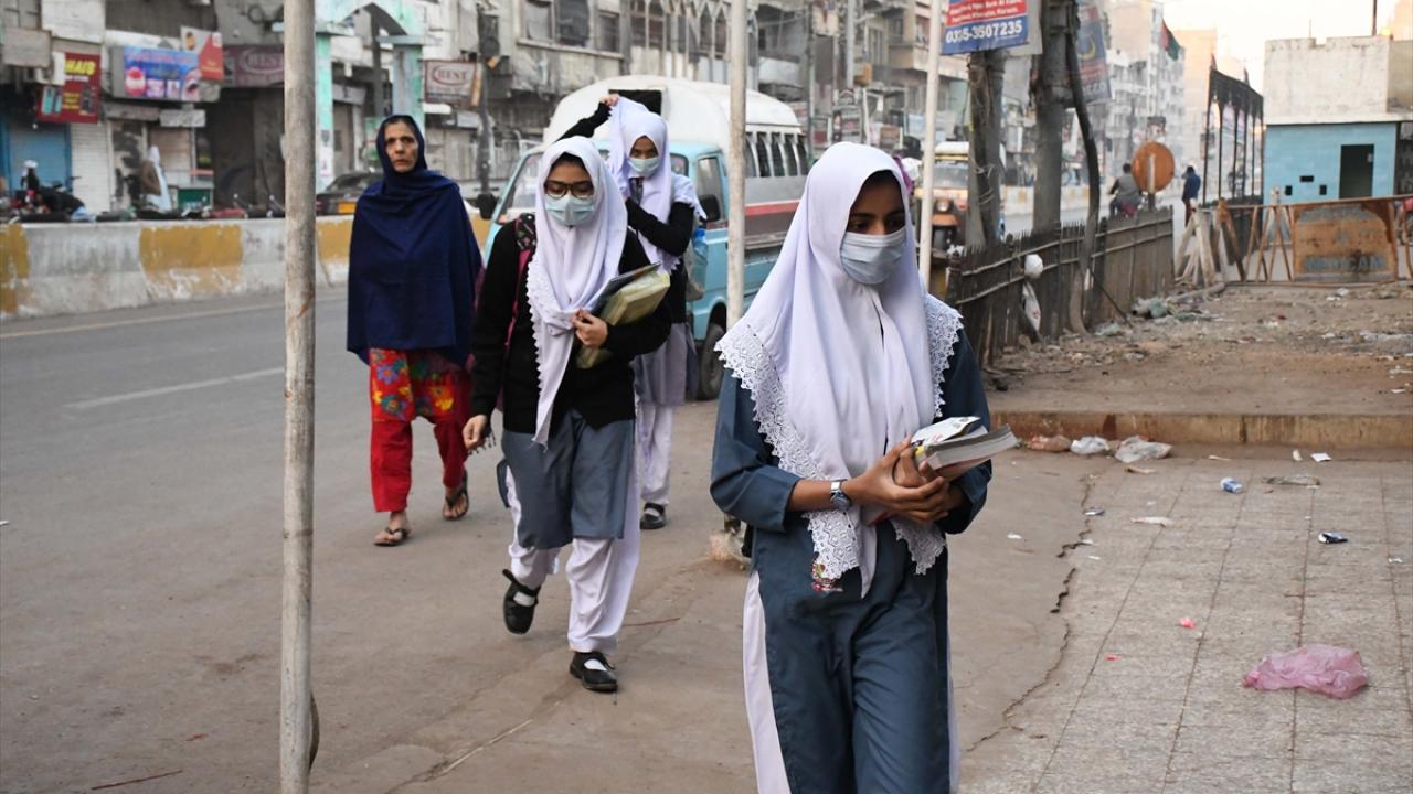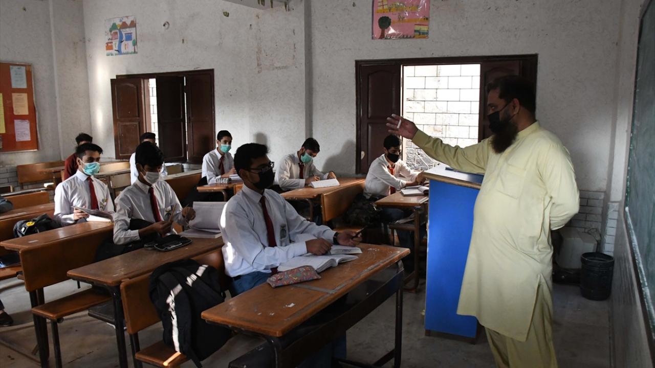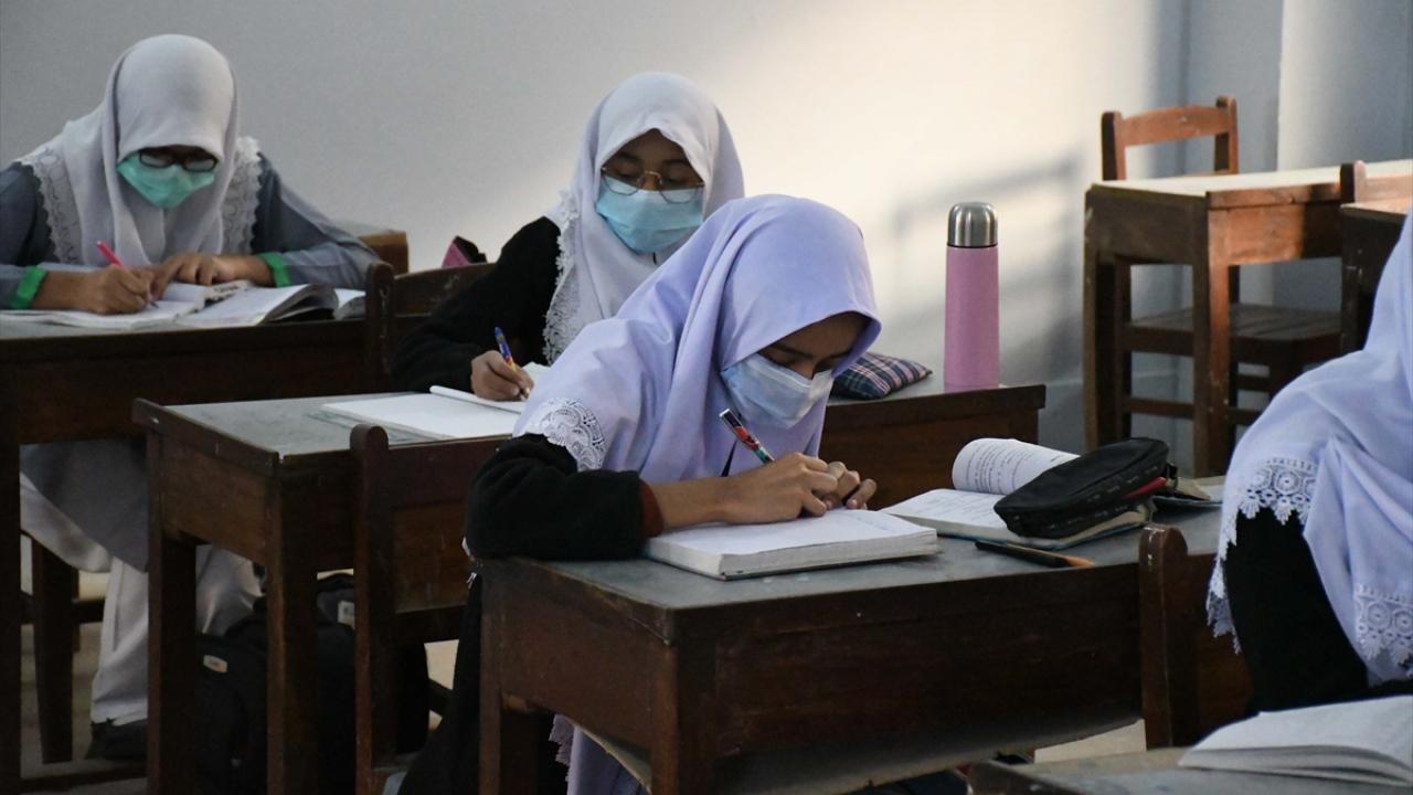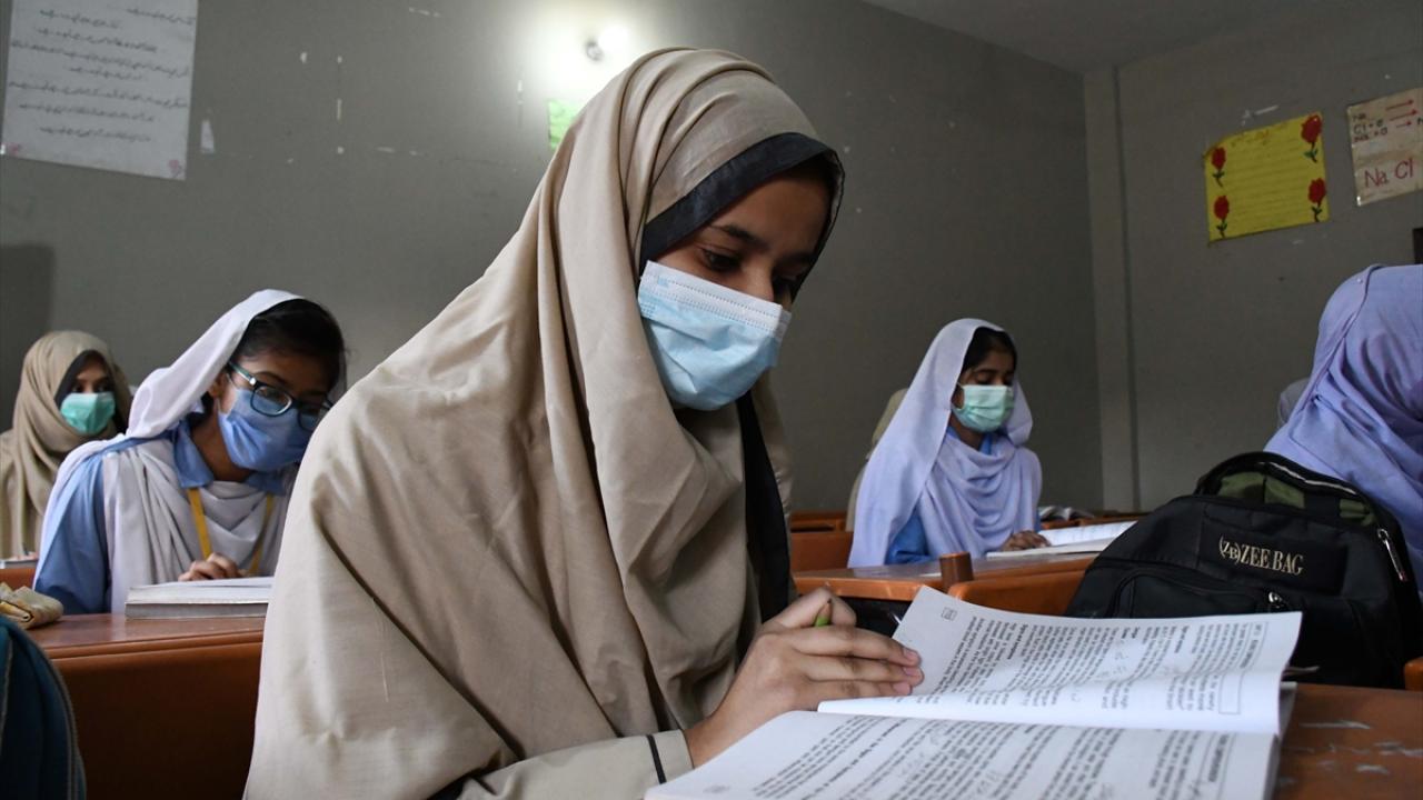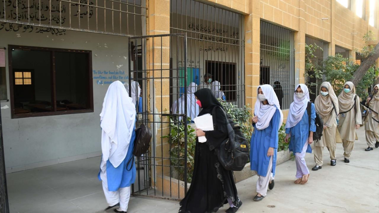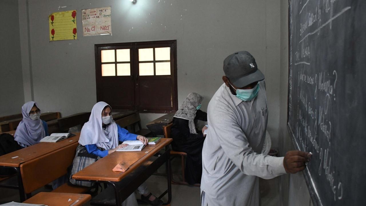 Pakistan'da yeni tip koronavirüs (Covid-19) tedbirleri kapsamında ara verilen yüz yüze eğitim, ortaokul öğrencileri için bugün yeniden başladı.