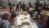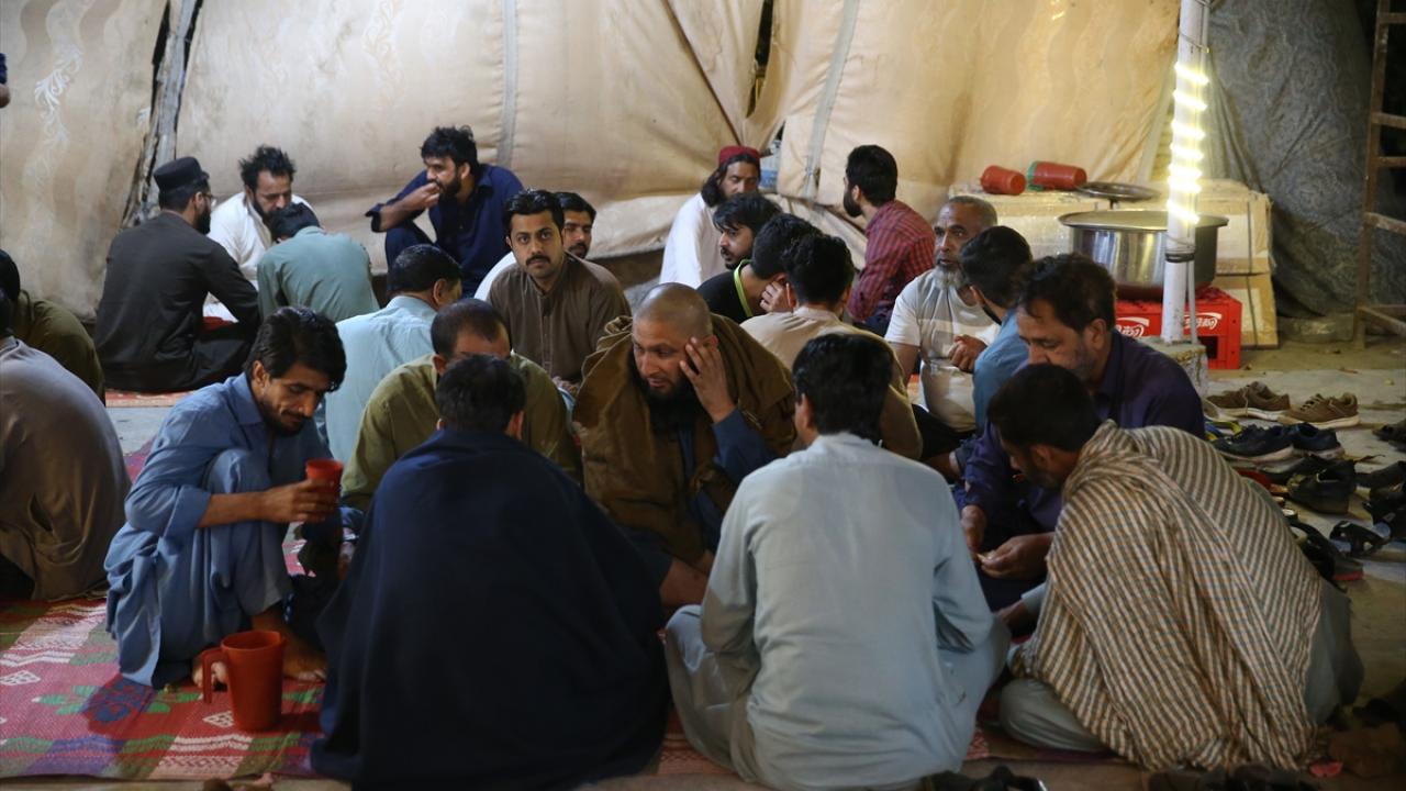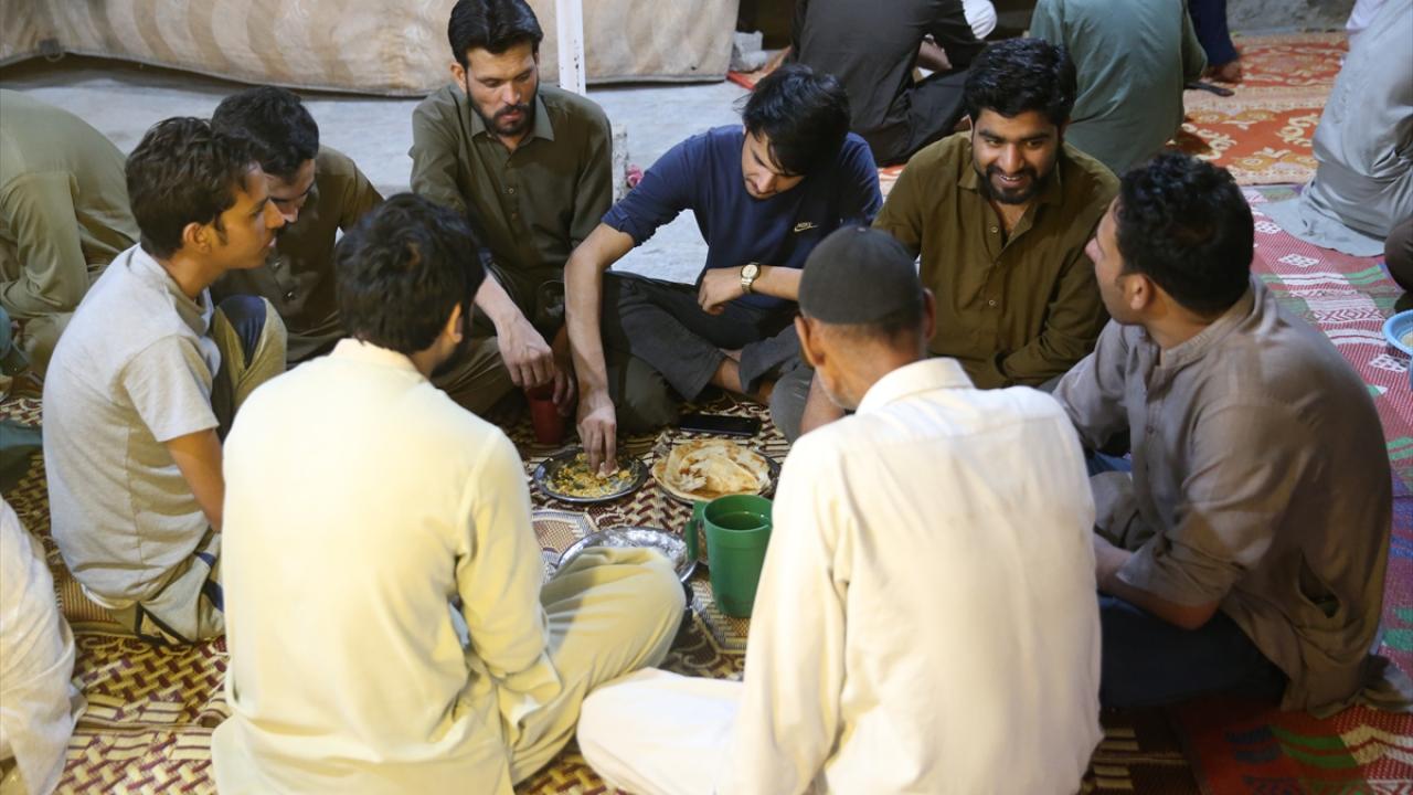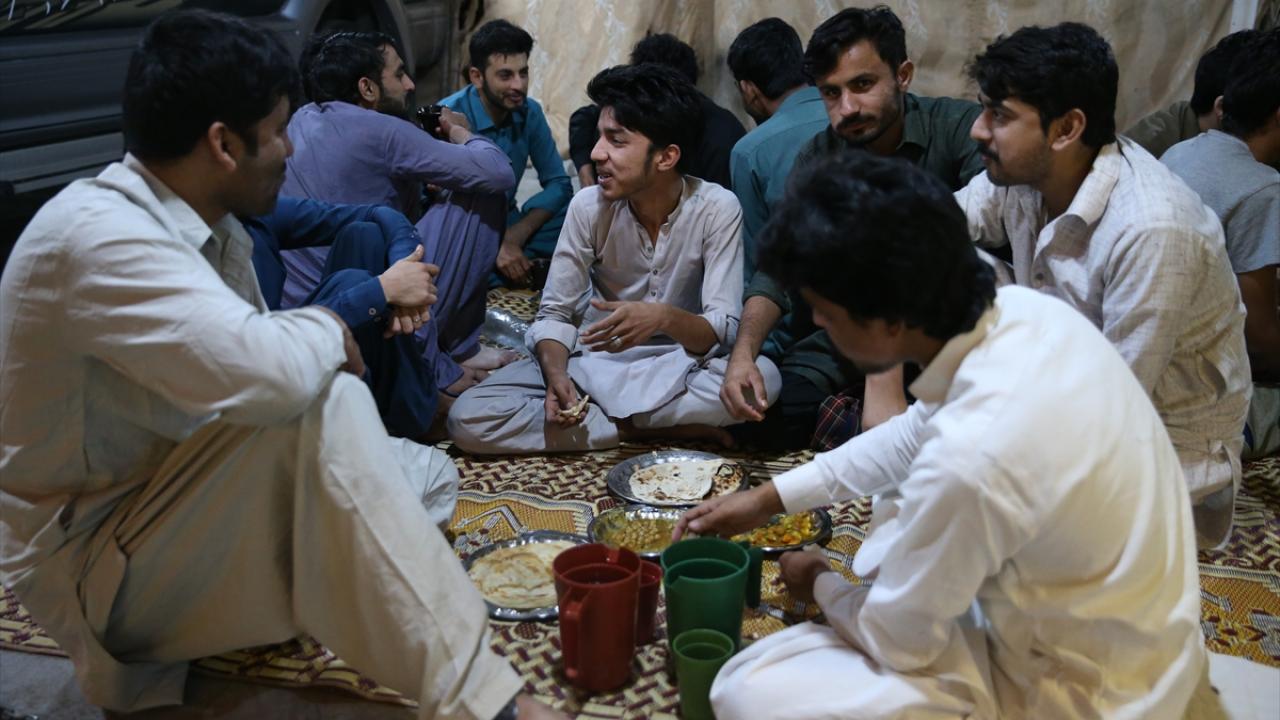 Bazı Pakistanlılar da sahurlarını, yerlere serilen hasırlar üzerinde 15-20 kişi bir araya gelerek yaptı.
