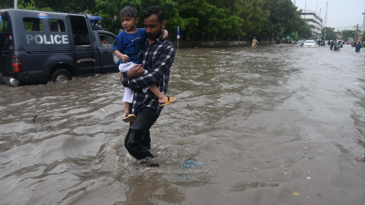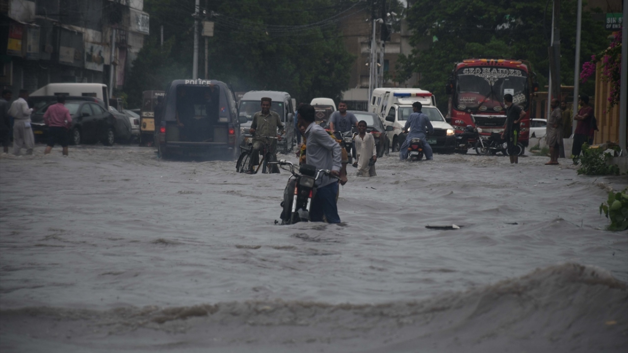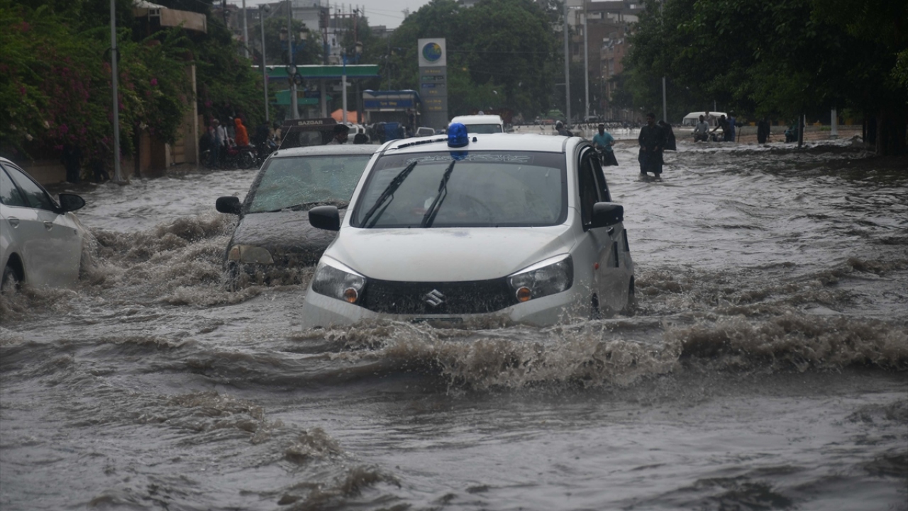 Pakistan'ın Karaçi şehrindeki yoğun muson yağmurlarının yol açtığı sel, hayatı olumsuz etkiledi. Vatandaşlar ve bazı sürücüler yolda mahsur kaldı.