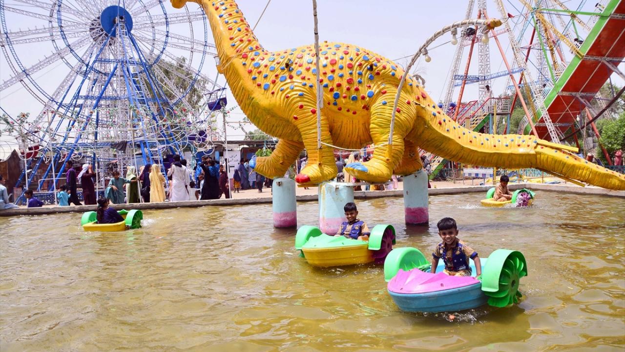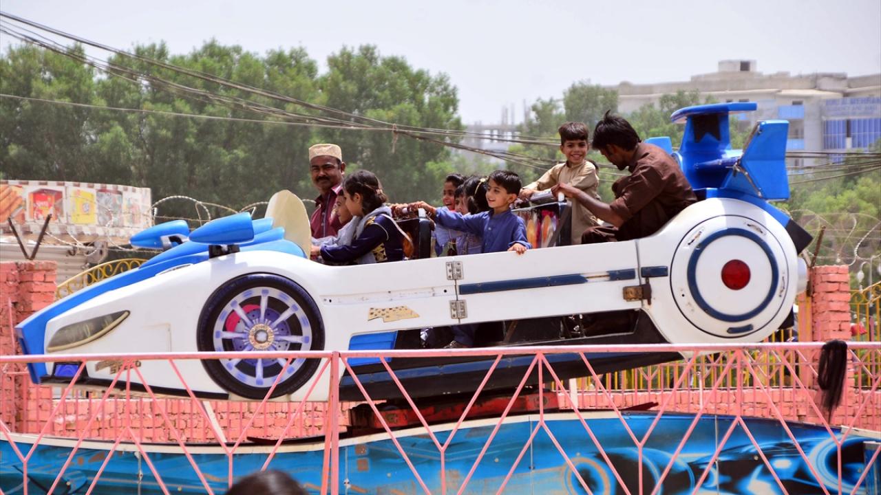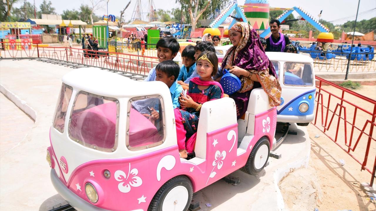 Pakistan'ın Haydarabad kentinde yaşayan aileler Ramazan bayramının ikinci gününde hayvanat bahçesi ve lunaparkta eğlenerek vakit geçirdi.