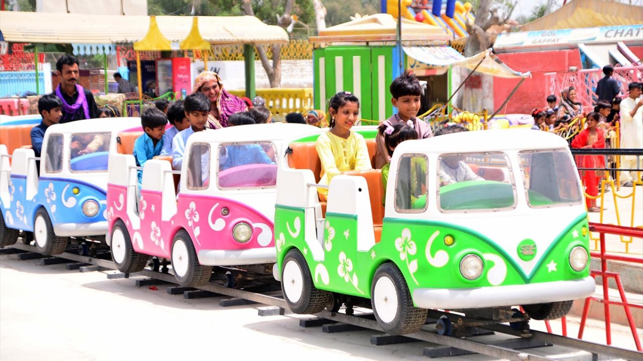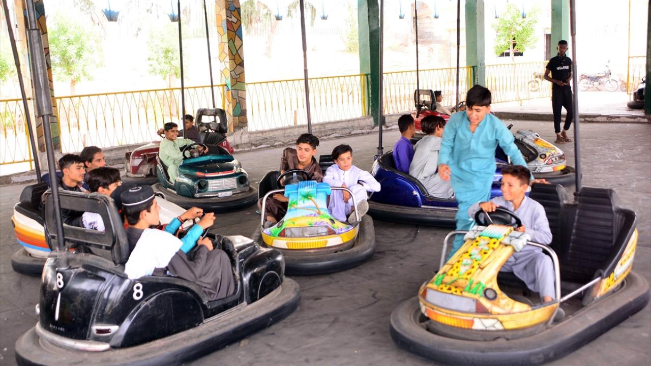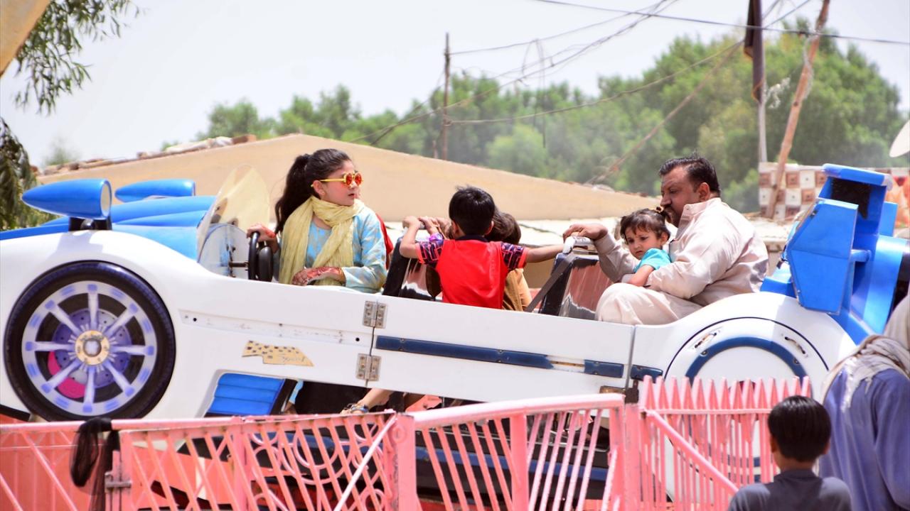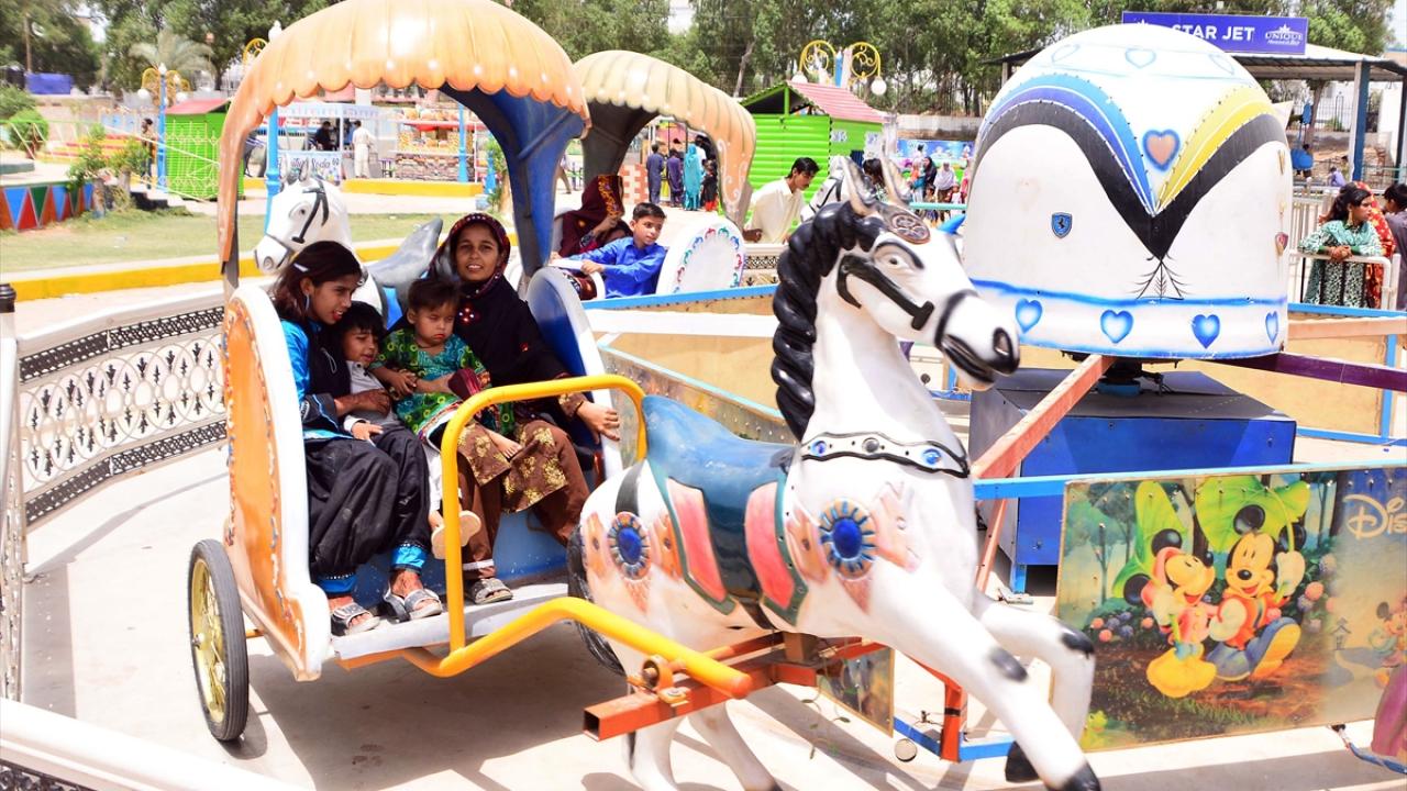 Pakistan'ın Haydarabad kentinde yaşayan aileler Ramazan bayramının ikinci gününde hayvanat bahçesi ve lunaparkta eğlenerek vakit geçirdi.
