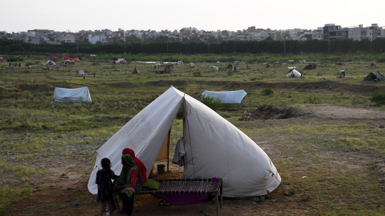 Pakistan'da sel mağdurları kamp alanında yaşamaya başladı