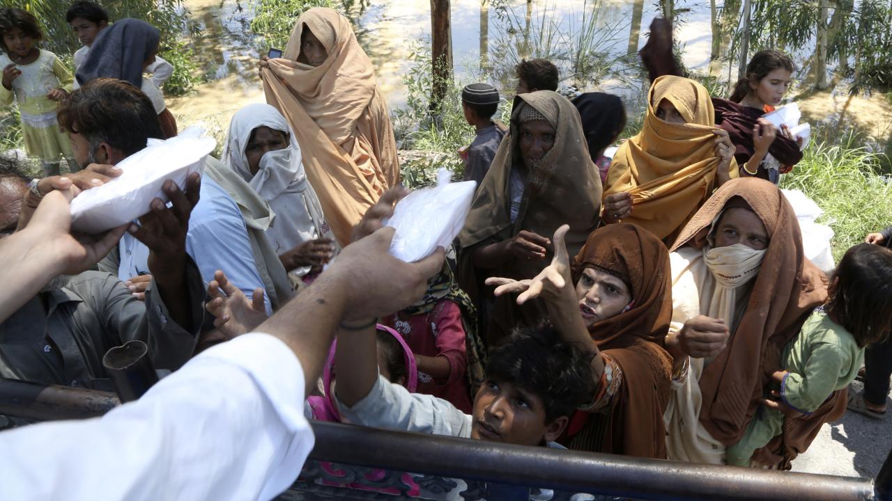 Askerler ve kurtarma görevlileri mahsur kalanları kurtarıp yardım kamplarına tahliye ederken yerinden edilmiş binlerce Pakistanlıya yiyecek yardımı yapıldı.