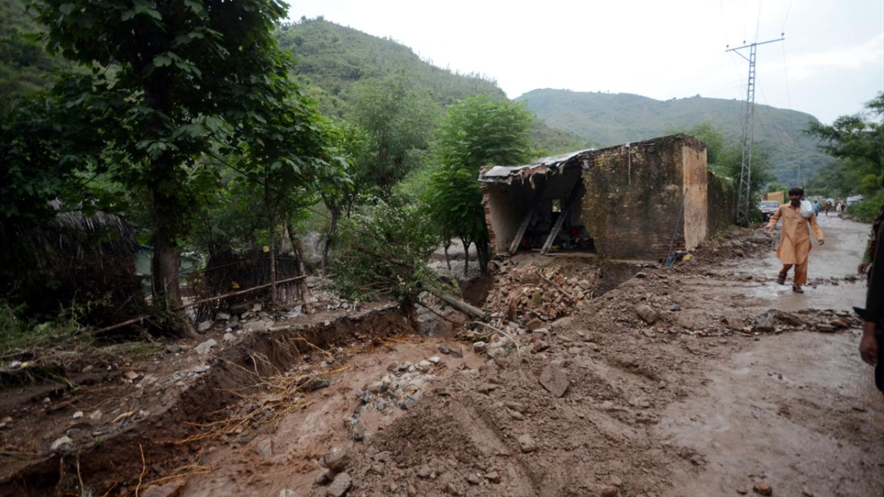 Kuzey Pakistan’daki Swabi bölgesinde etkili olan şiddetli muson yağmurları sonucunda Darorai köyünde en az 12 ev sular altında kaldı ve en az 18 kişi hayatını kaybetti.