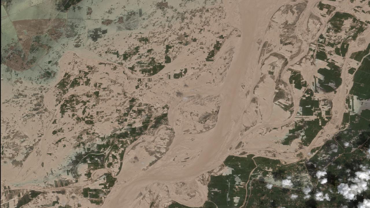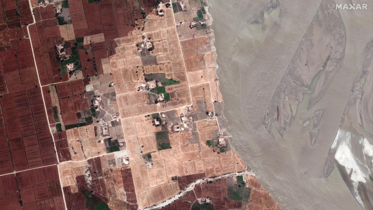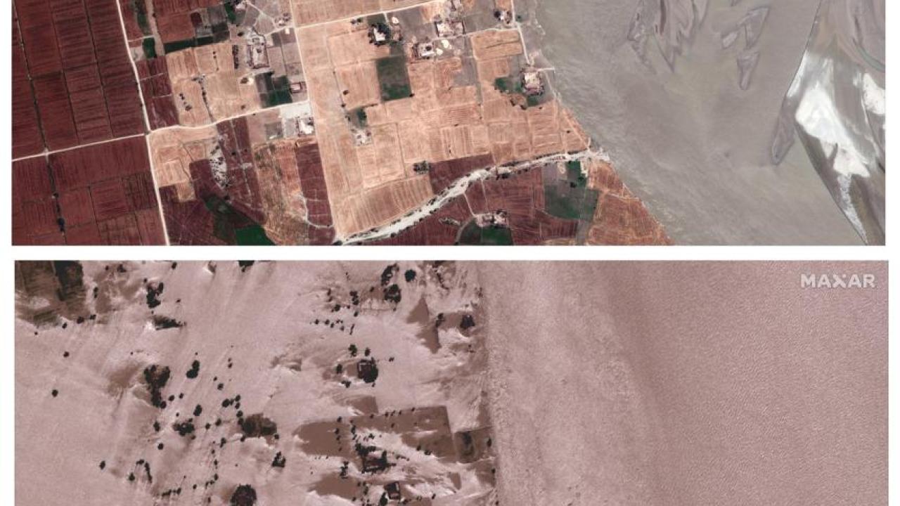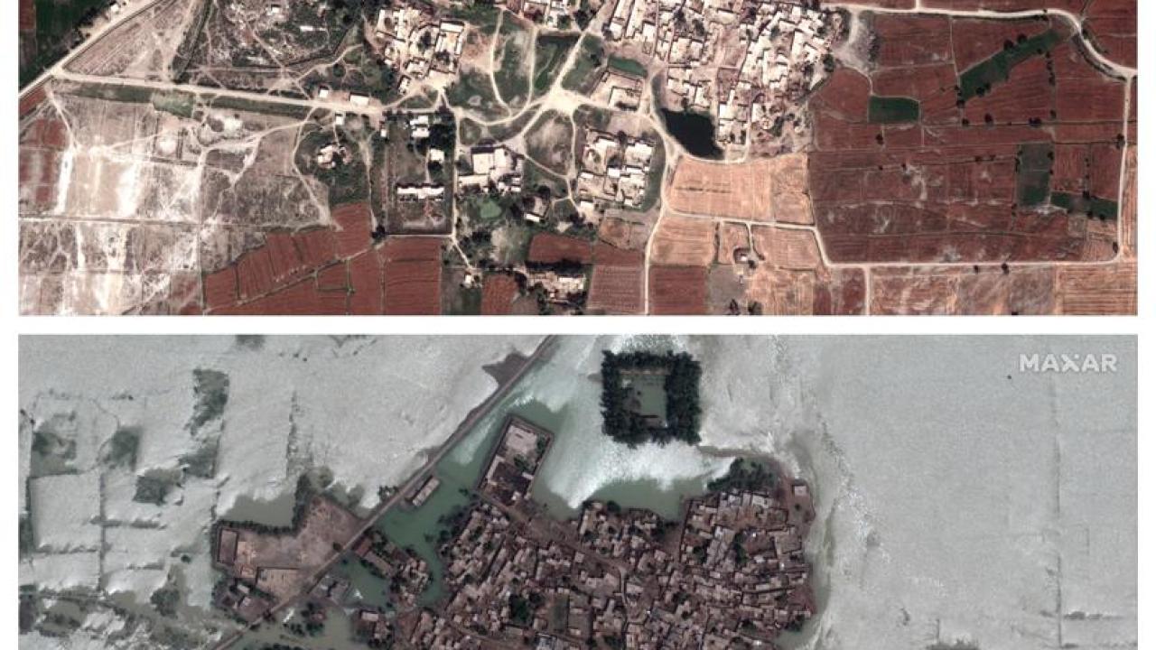Maxar Technologies tarafından sağlanan 24 Mart ve 28 Ağustos 2022 fotoğraflar, sel felaketenin boyutunu ortaya koydu.. Pakistanlı yetkililer, ölenlerin sayısının bini aştığını belirterek, daha fazla uluslararası yardım için çağrıda bulundu.