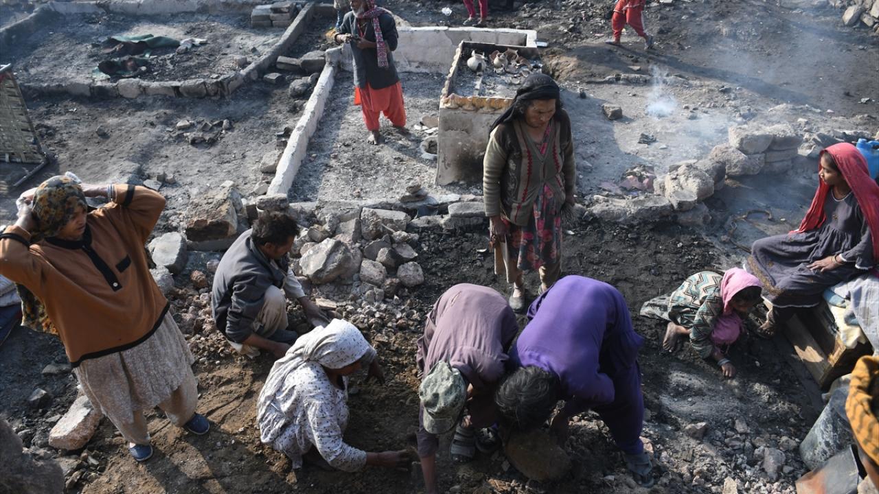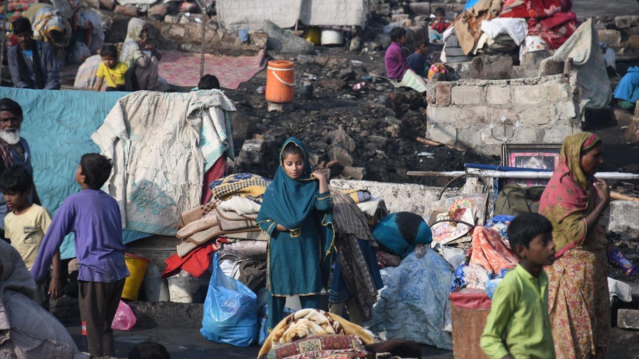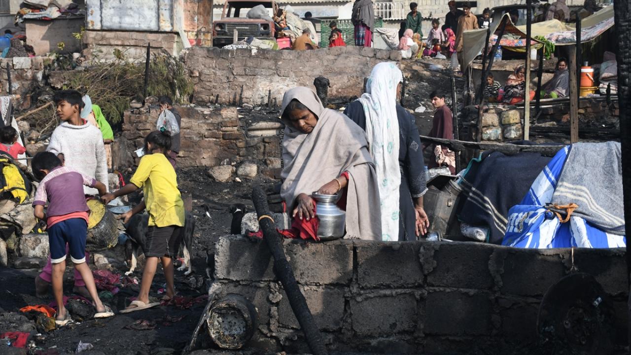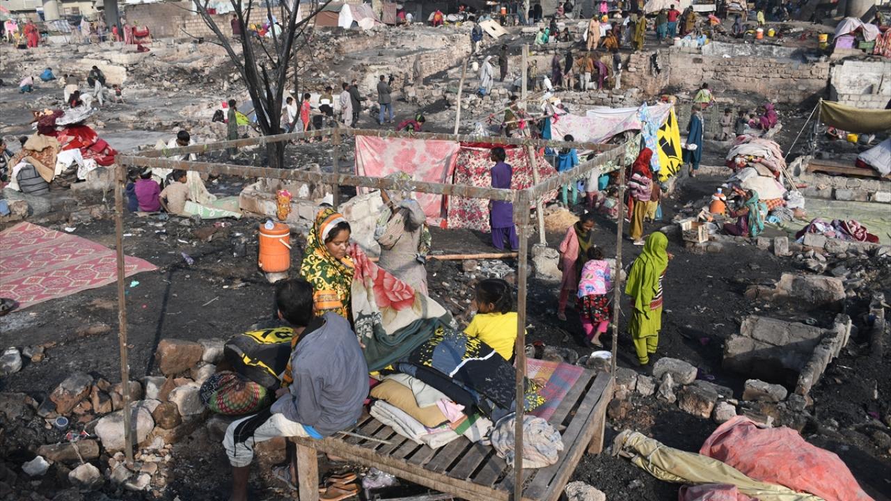Pakistan'ın Karaçi kentindeki gecekondu mahallesinde yangın çıktı