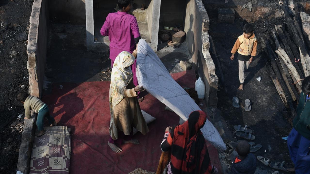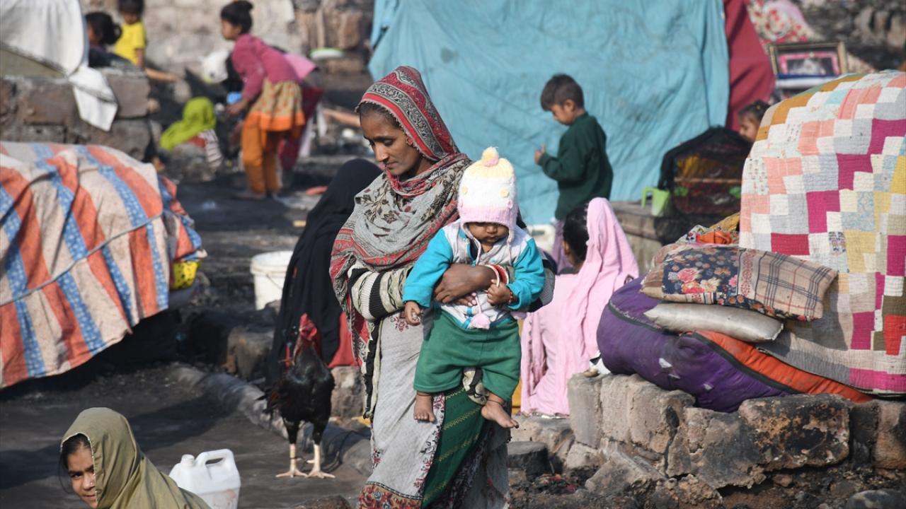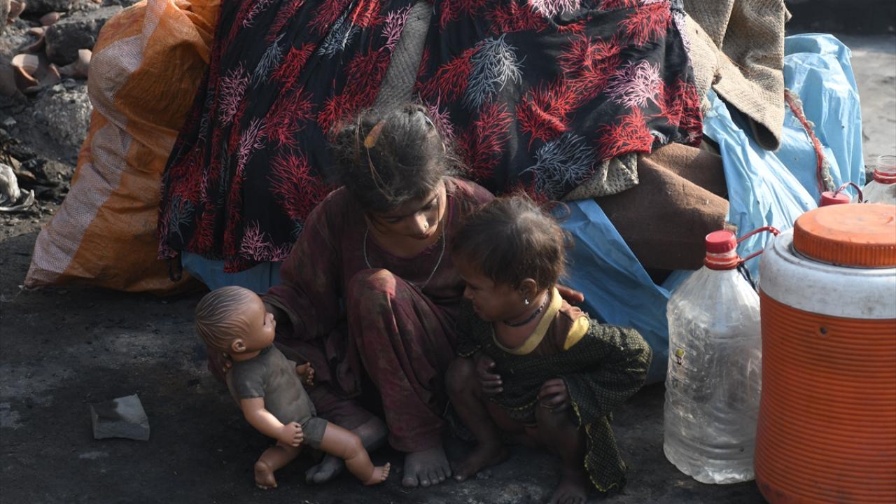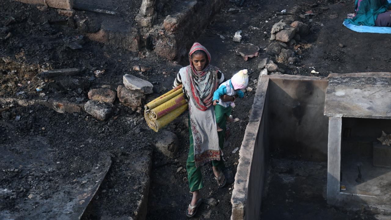 Pakistan'ın Karaçi kentindeki gecekondu mahallesinde yangın çıktı
