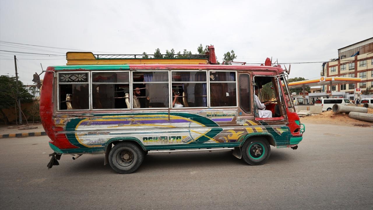 Hint Okyanusu`na kıyısı bulunan Karaçi`de Pakistanlıların ulaşım aracı olarak kullandığı renkli otobüsler dikkati çekiyor.
