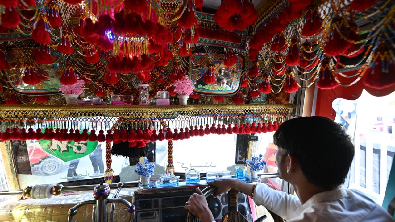 Araçların dışarıdan görülen renkli hali, içerisinde de sürüyor. Renkli işlemeler ve rengarenk püsküllerle süslenen otobüsler, farklı bir seyahat deneyimi sunuyor.