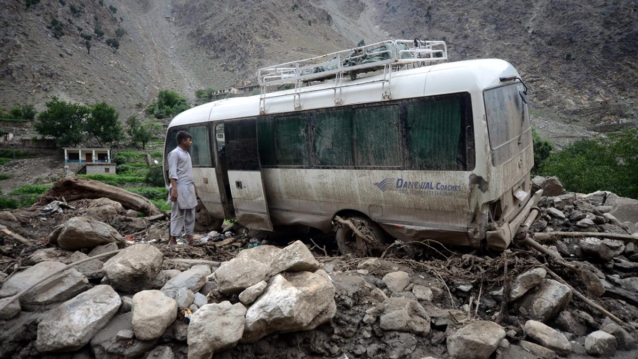 Pakistan'ın Thak Gah Köyü'nde meydana gelen şiddetli sel ve sağanak yağışların, Khyber Pakhtunkhwa (K-P) ve Gilgit-Baltistan (G-B) bölgelerinde yol açtığı yıkımın ardından enkaz kaldırma çalışmaları sürüyor.