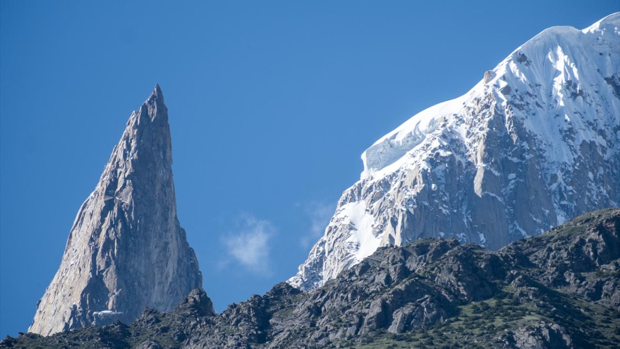 Karakurum Sıradağları`nın içerisinde, karlı dağların arasında bulunan sivri kayalık Lady Finger Zirvesi, 6 bin metrelik yüksekliğiyle dağcıların tırmanışı için dik ve zorlu bir alan sunuyor.