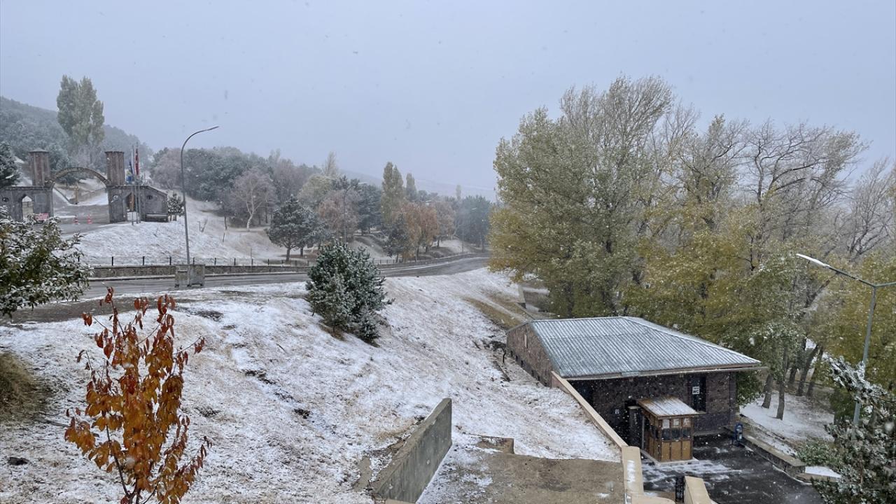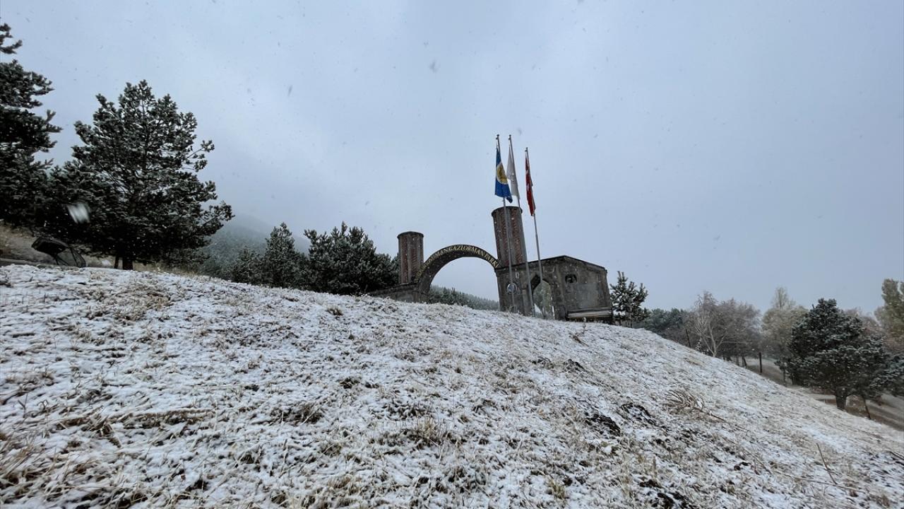 Palandöken ilçesindeki Abdurrahman Gazi Türbesi bölgesinde de kar yağışı etkili oldu.