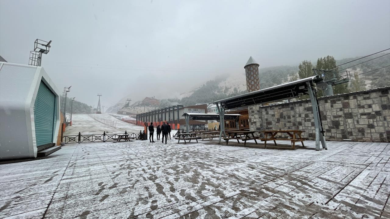 Türkiye'nin önemli kış turizmi merkezlerinden Erzurum'daki Palandöken Dağı'nın zirvesi, kar yağışıyla yeniden beyaza büründü.