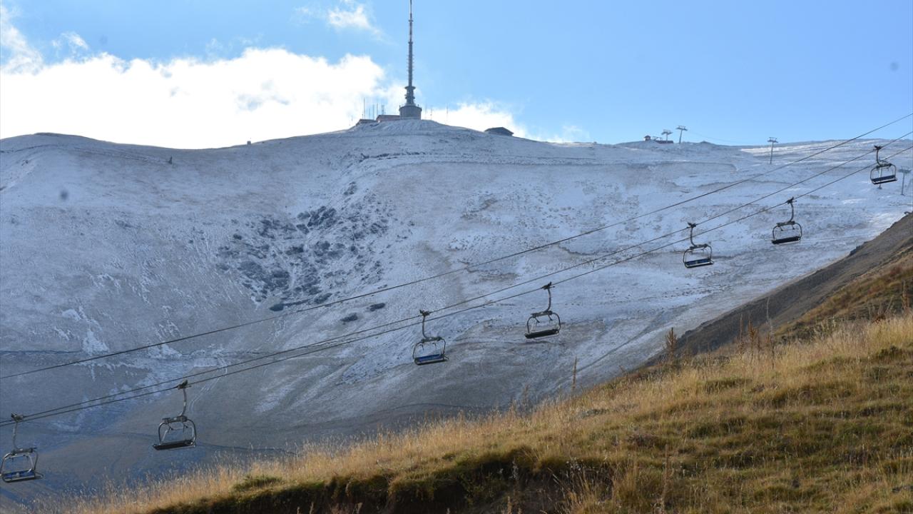 Türkiye'nin önemli kayak merkezlerinden Palandöken'in yüksek noktalarına kar yağdı.