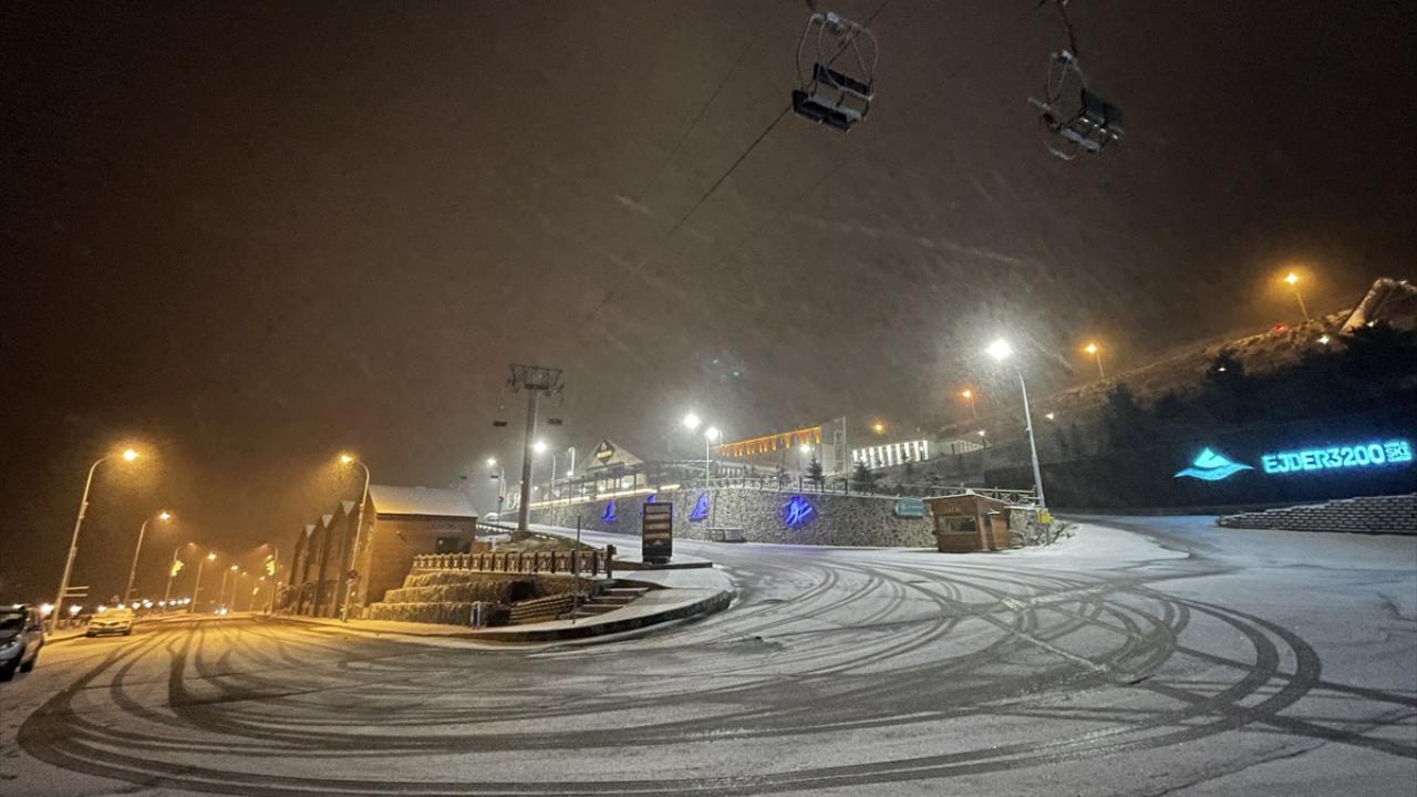Türkiye'nin önemli kış turizm merkezlerinden Erzurum'daki Palandöken Kayak Merkezi kar yağışıyla beyaz örtüyle kapladı.