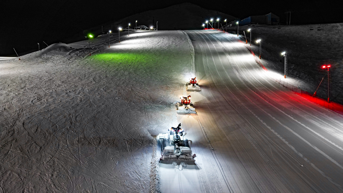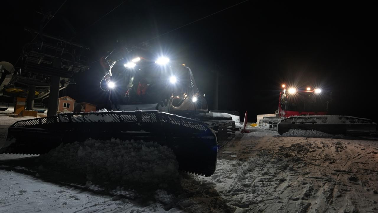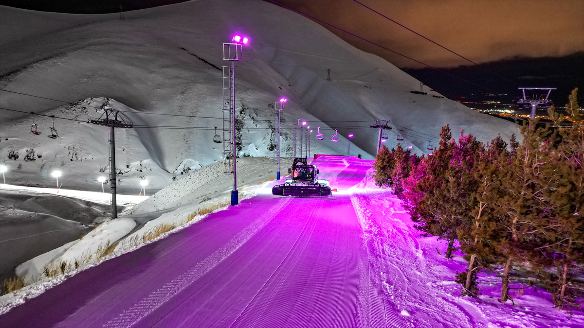 Akşam saatlerinde hava karardıktan sonra Palandöken`de aydınlatma sistemleri devreye alınıyor ve snowtracklarla 10 kilometreyi bulan pistler gece kayağına hazırlanıyor.