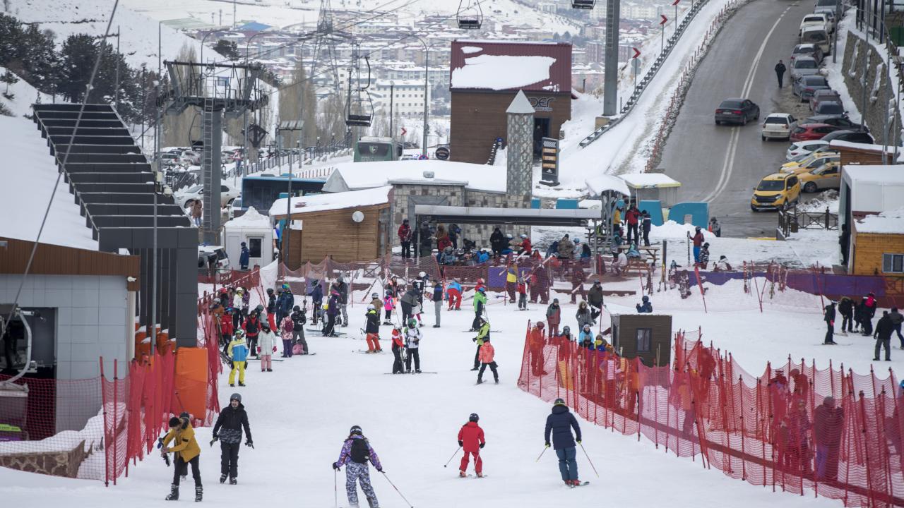Türkiye'nin önemli kış turizm merkezlerinden Palandöken Kayak Merkezi, hafta sonunda çok sayıda ziyaretçiyi ağırlıyor.