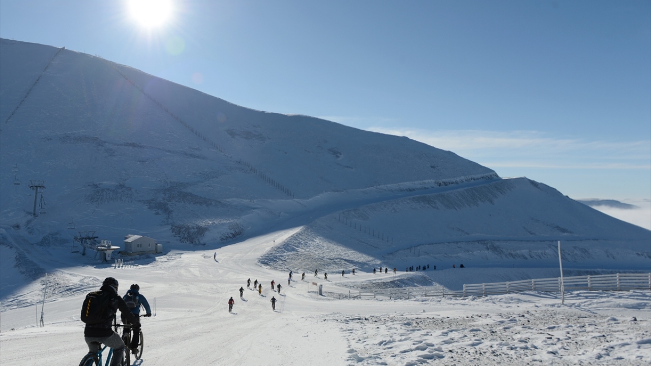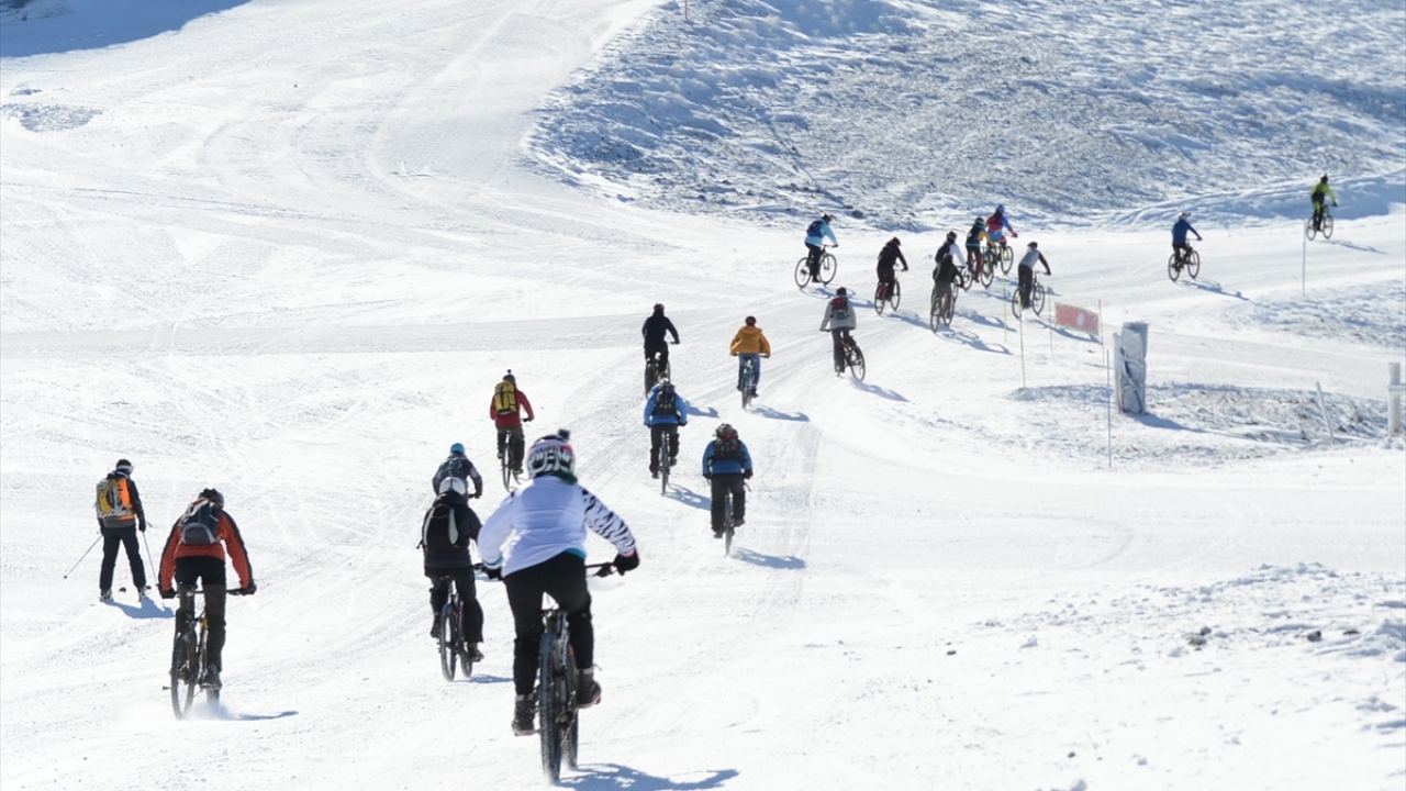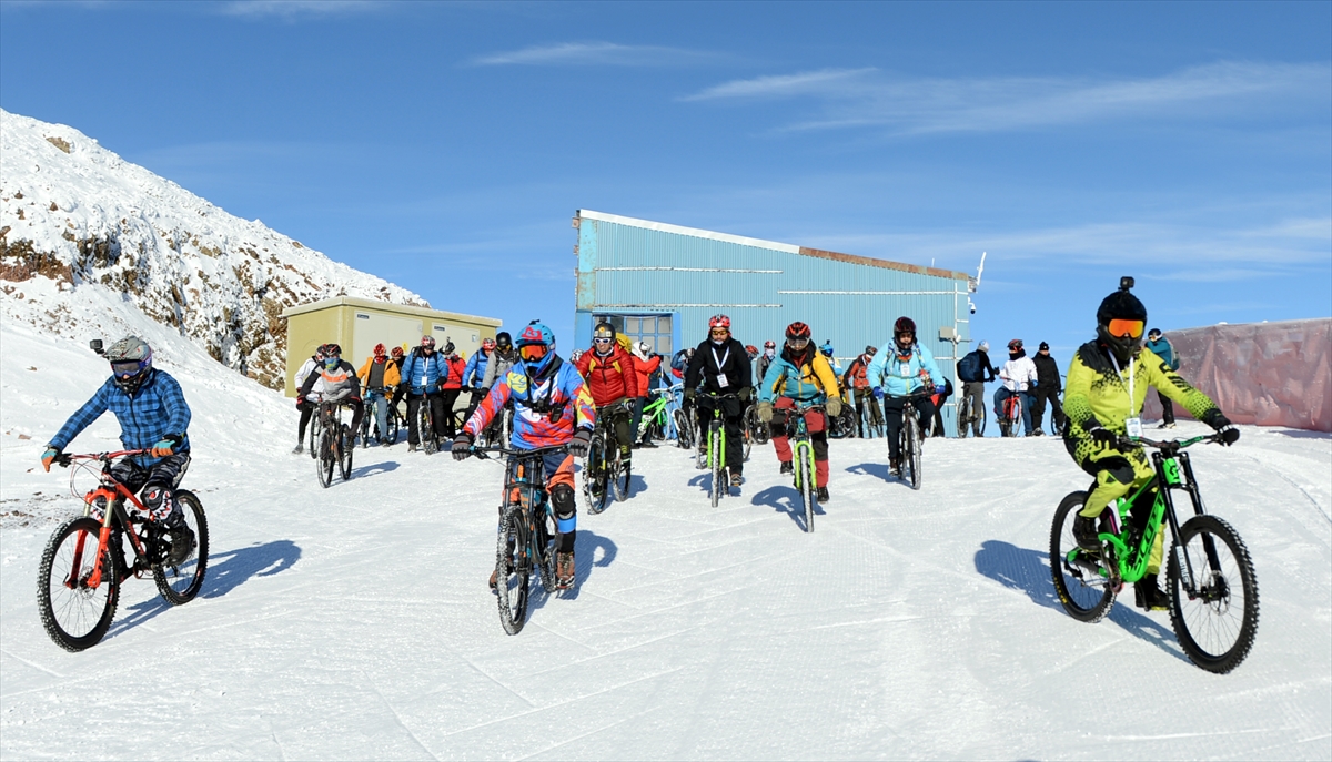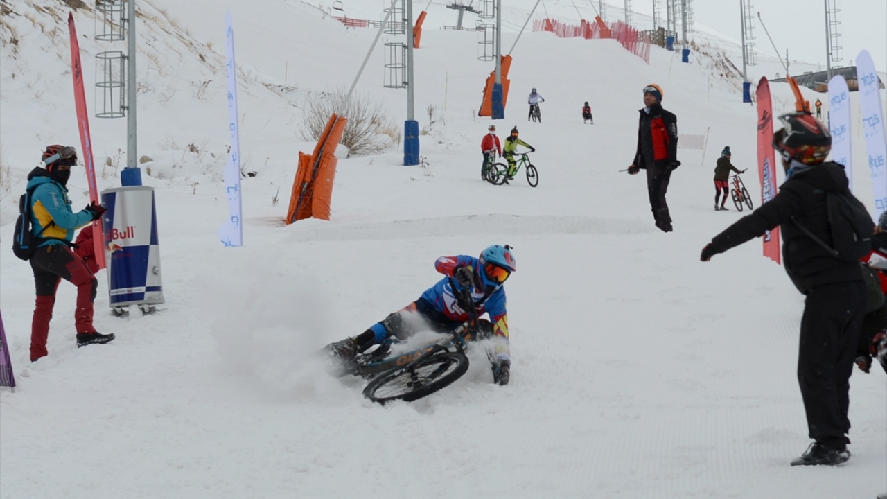 Erzurum'da düzenlenen "Palandöken Outdoor Festivali" kapsamında, karda bisiklet etkinliği gerçekleştirildi.