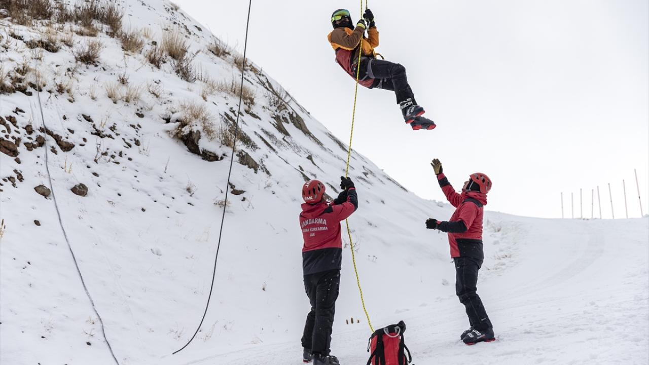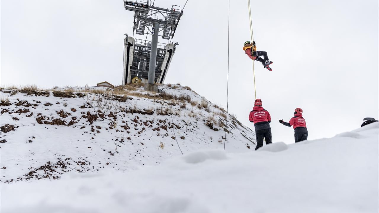 Türkiye'nin önemli kayak merkezlerinden Erzurum'daki Palandöken'de görevli Jandarma Arama ve Kurtarma (JAK) timi, kayaklı ve motorize ekipleriyle kurtarma tatbikatlarına devam ediyor.