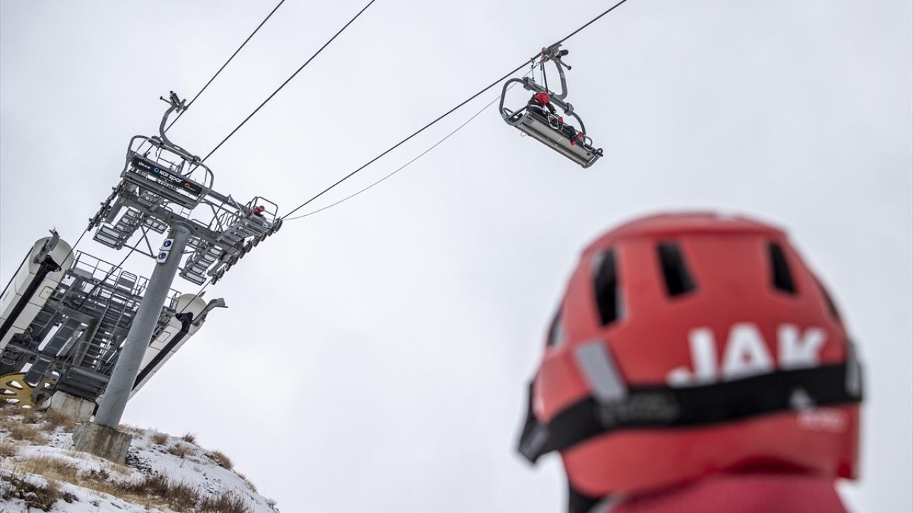 Kayak merkezindeki telesiyej-gondolların olduğu noktalarda nöbet tutan ve aldıkları tedbirlerle yerli ve yabancı turistlere güven veren JAK timleri, farklı senaryolardaki tatbikatlarla eğitimlerini aksatmıyor.