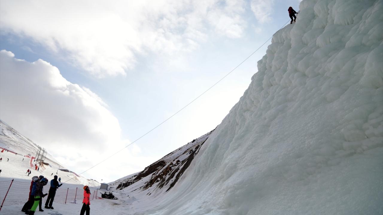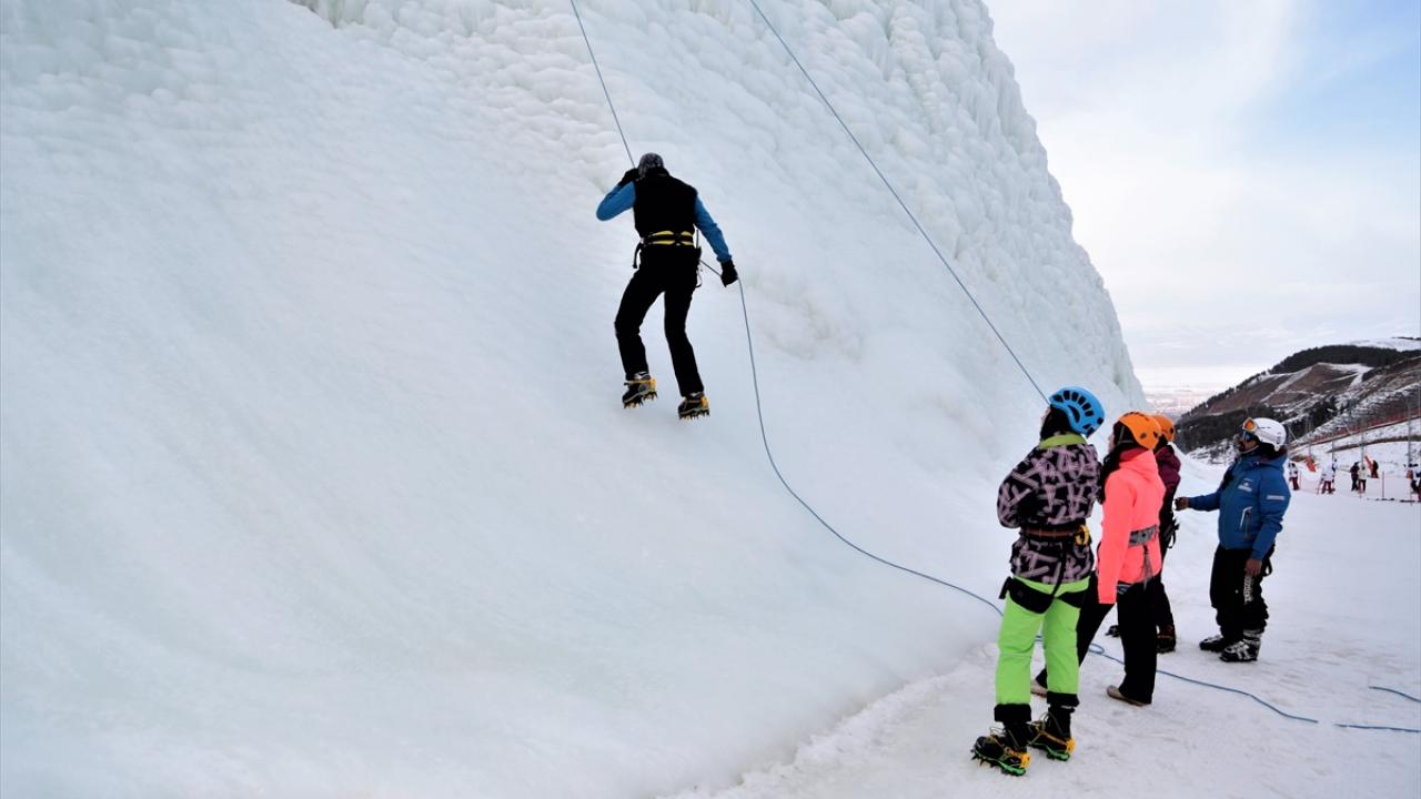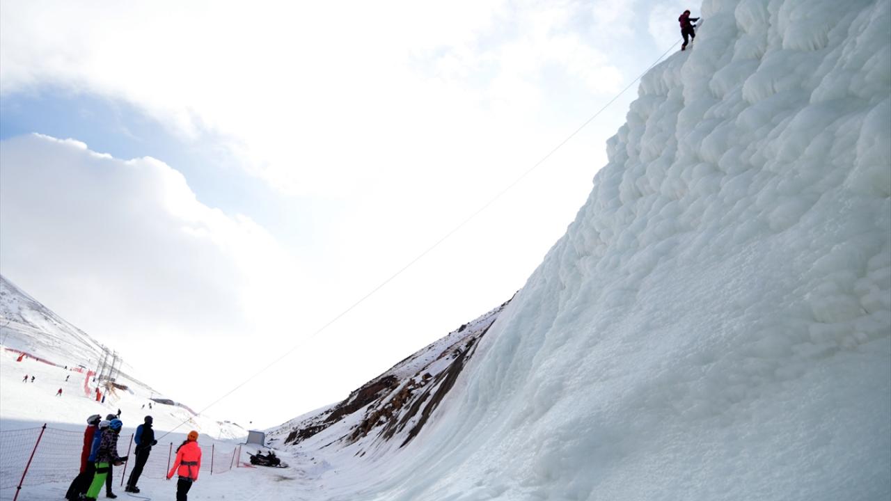 Dünyanın önemli kış turizm merkezlerinden Erzurum'daki Palandöken Kayak Merkezi'nde yapılan 20 metre yüksekliğinde ve 150 metre enindeki yapay buz parkı adrenalin tutkunlarının ilgisini çekiyor.