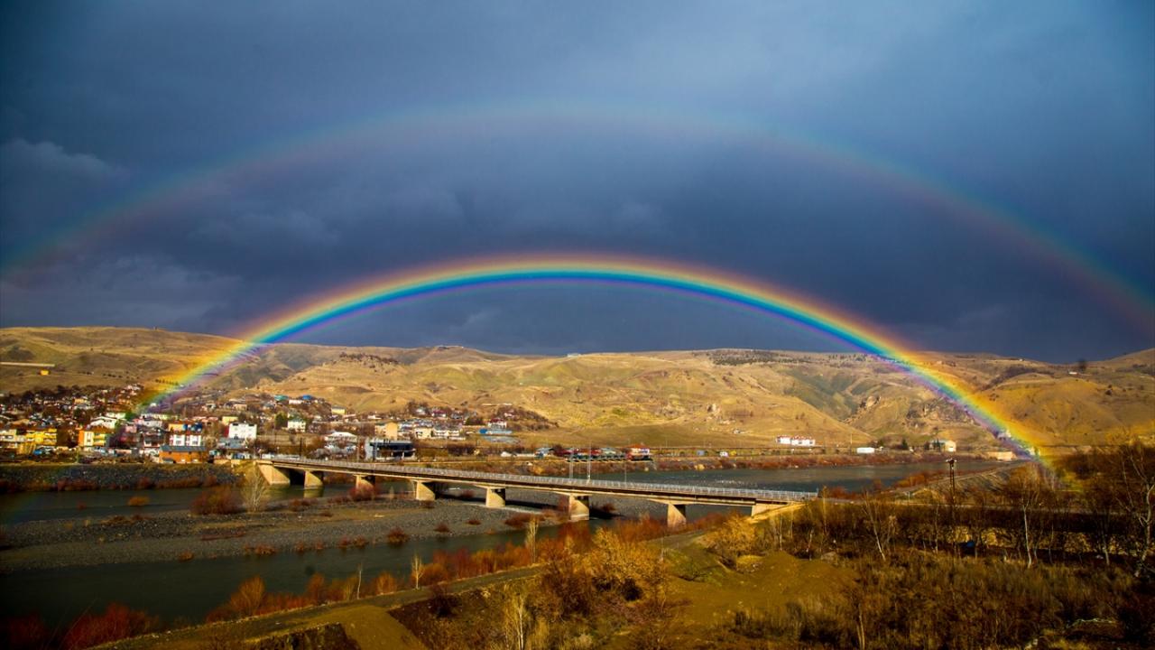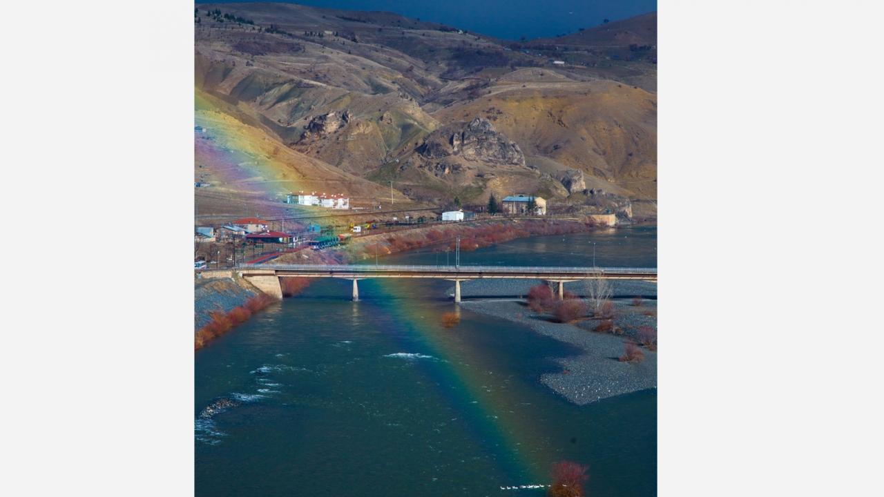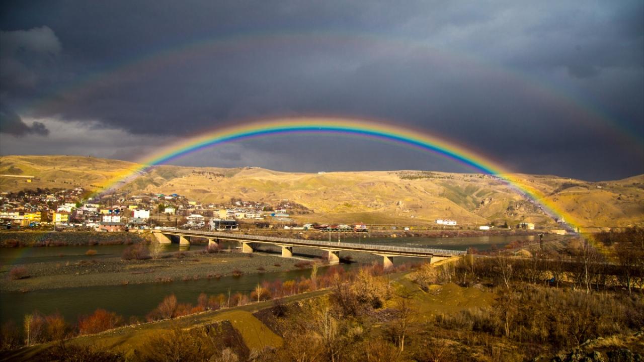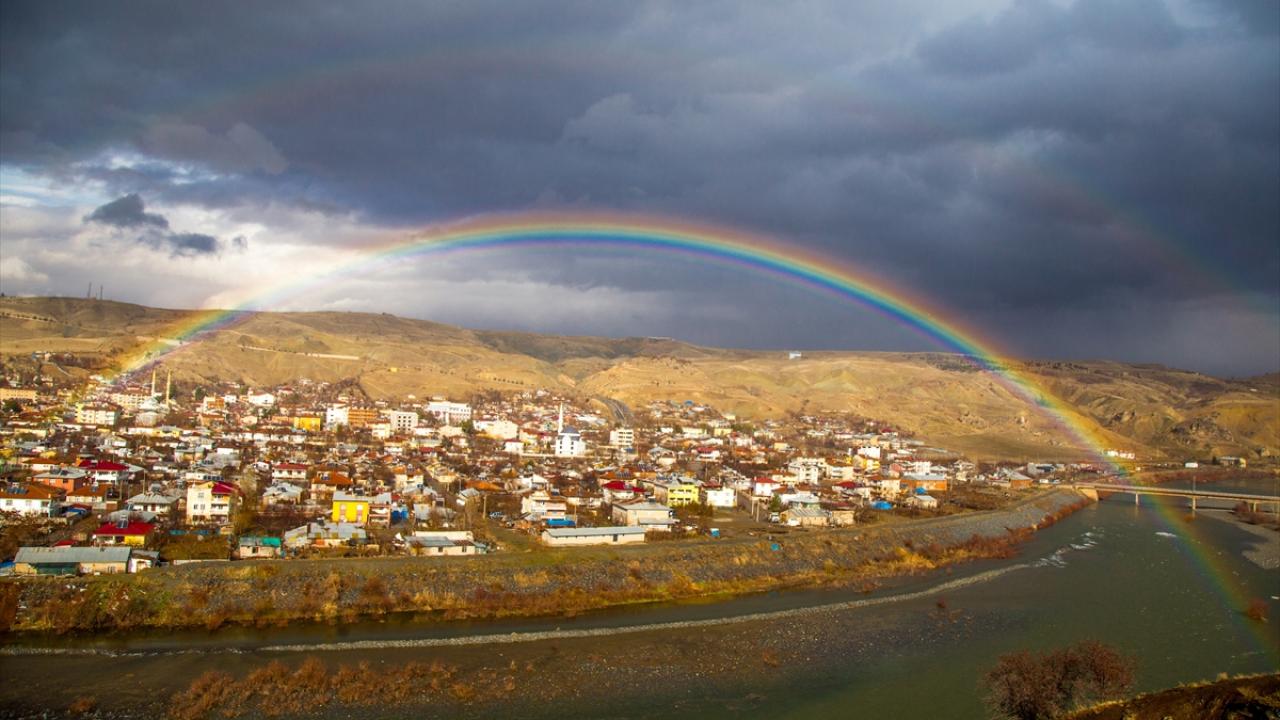 Elazığ'ın tarihi ve doğal güzellikleriyle öne çıkan ilçesi Palu'da yağmurun ardından gökkuşağı oluştu.
