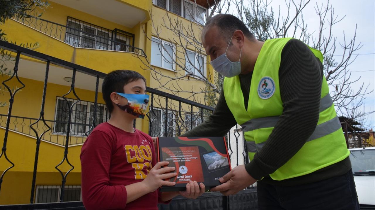 Belediye ekipleri, tabletleri, öğrencilerin evlerine kadar götürerek teslim etti.