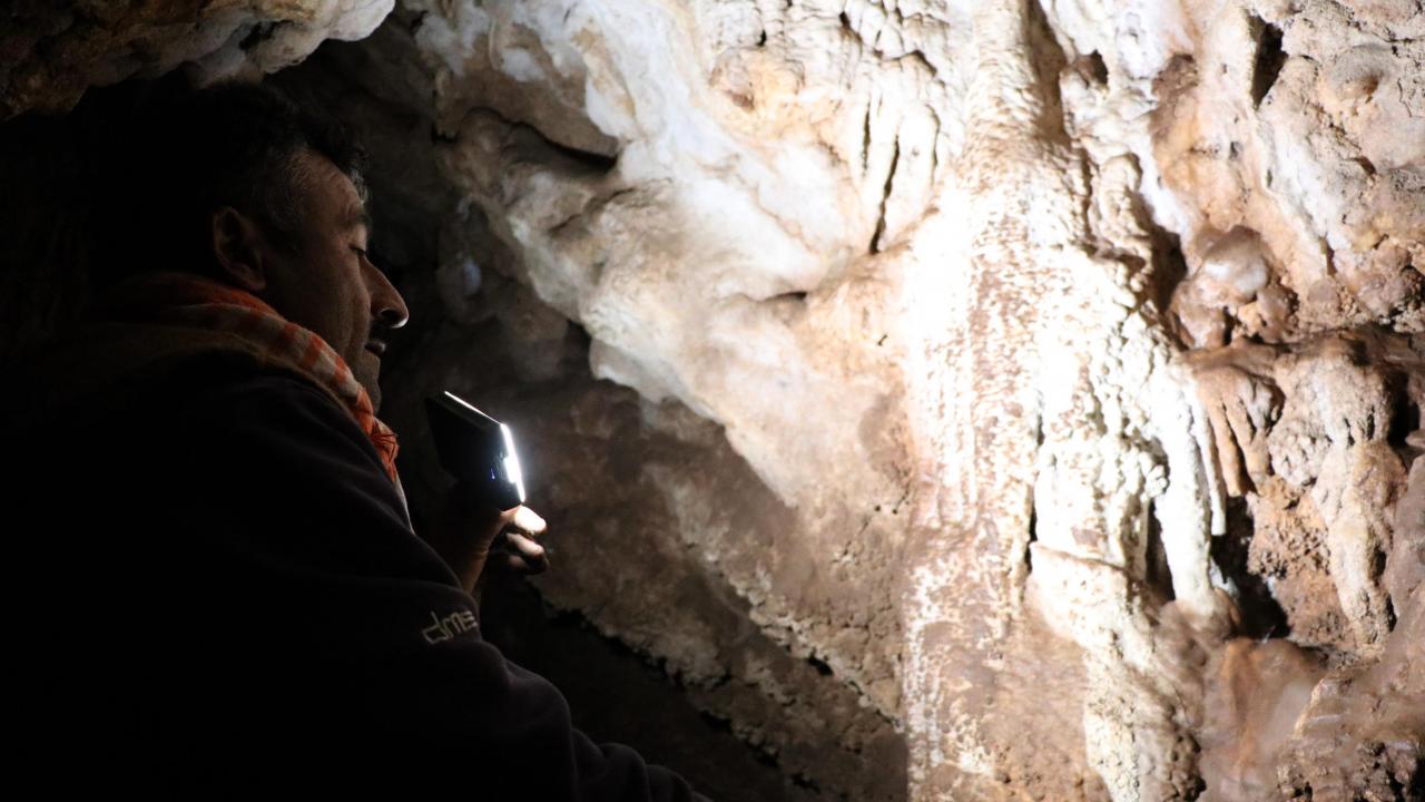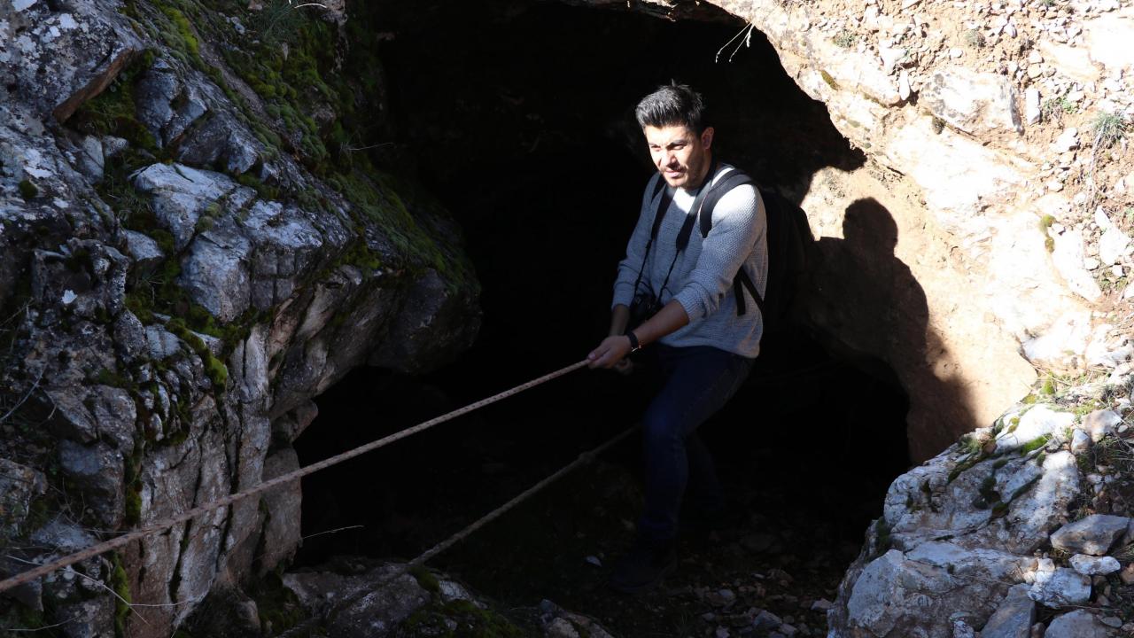 "Define avcıları kaya üzerindeki insan başı figürüne bakıp, yanında hazine bulmak amacıyla kaçak kazı yapmışlar. Kazdıkları sırada bu mağarayı bulmuşlar. Eskiden burada böyle bir mağara yoktu. Kaçak kazıyla ortaya çıkmış, ne zaman kazıldığı belli değil. Avcılar gizli cenneti ortaya çıkarmış. Mağaranın içinde hazine bulup, bulmadıklarını da kimse bilmiyor. Dar bir girişi var iple inilebiliyor. İçinde travertenler ve sarkıtlar var. Daha derin olan yerler var ancak girilemiyor. Mağaranın koruma altına alınmasına sevindik. Turizme kazandırılırsa bölge için iyi olur."