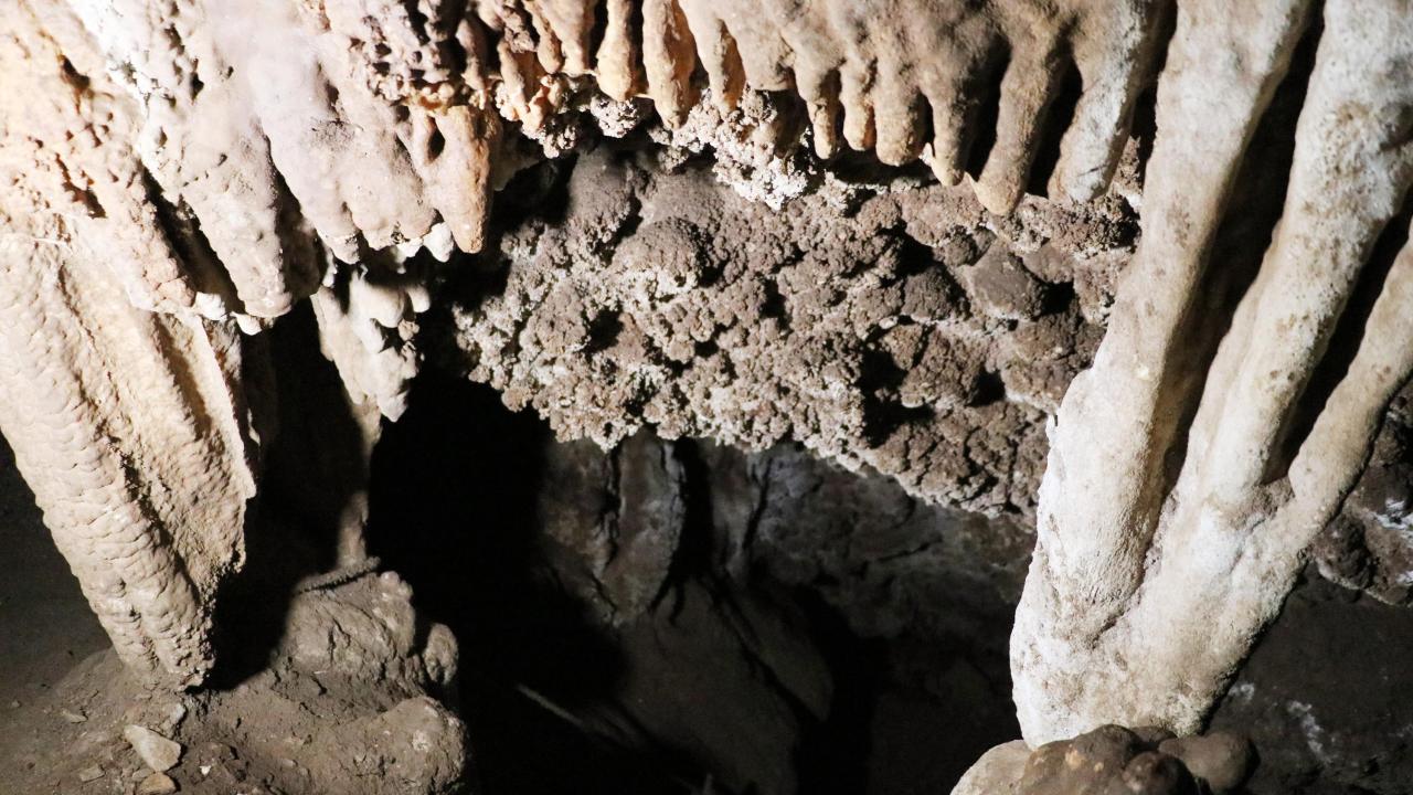 Dağlık alandaki 1 saatlik yürüyüşle ulaşılan mağaradaki odacıklarda, UNESCO Dünya Kültür Mirası Listesi`nde yer alan Pamukkale`deki gibi travertenler ile sarkıt ve dikitler bulundu.